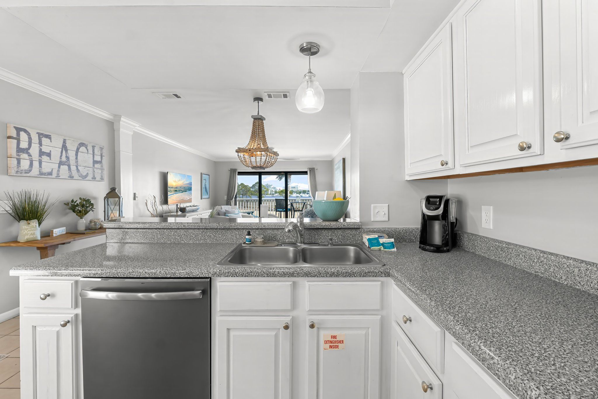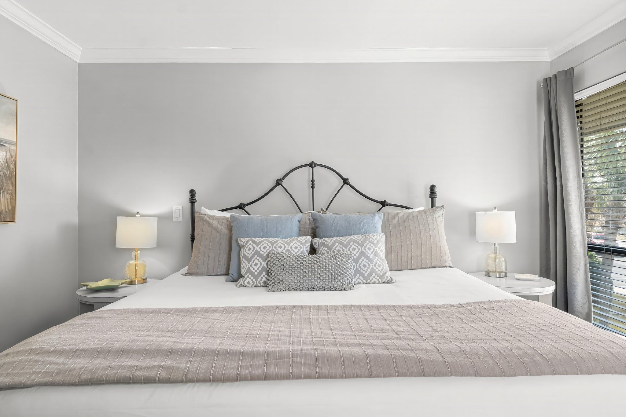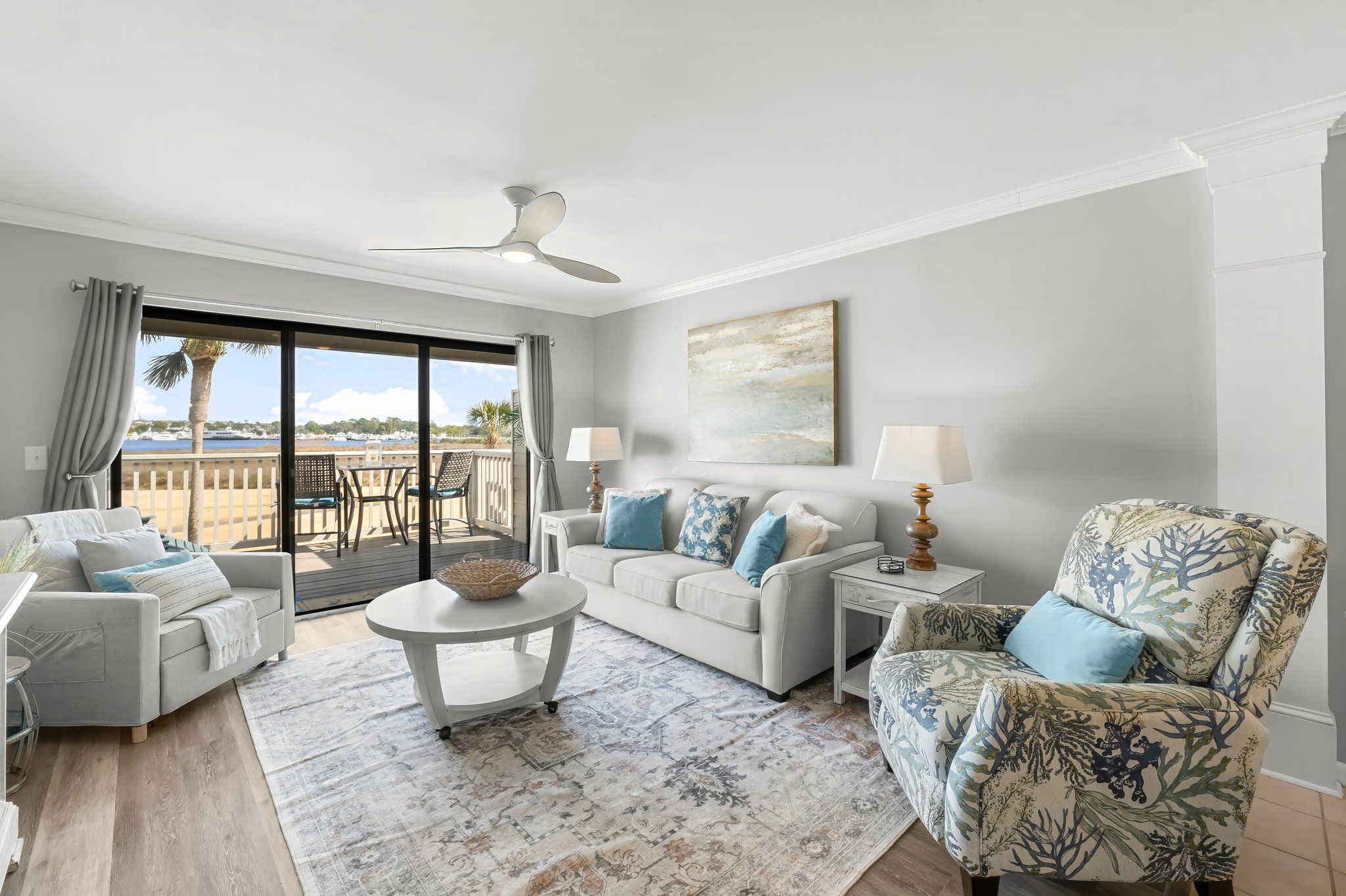 Walk into this second floor condo and leave your troubles at the door with white cabinetry in the full kitchen, alongside high end décor with neutral tones for that classy feel. Host a meal in this open concept space or simply enjoy a beverage on your private balcony, featuring comfy seating and bay views that will relax your soul. After a long day, cozy up in this one bedroom sanctuary that features a king bed, plush bedding, storage and laundry for longer stays, and a bath with a walk-in shower. Let your guests stay on the queen sleeper sofa or twin sleeper chair in the living room, so you can enjoy the area with family and friends for the duration of your trip.