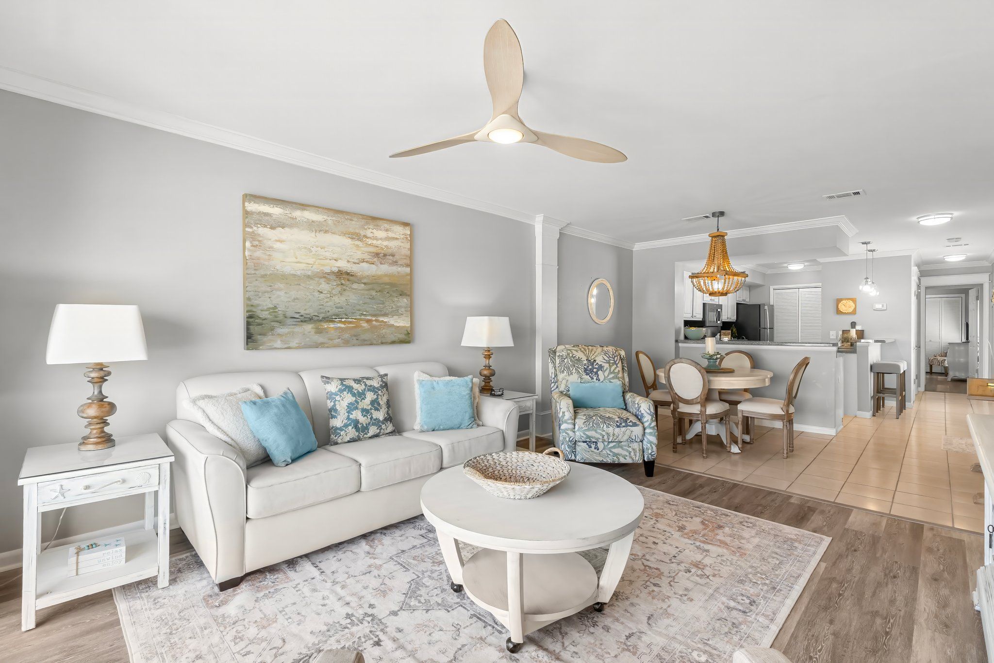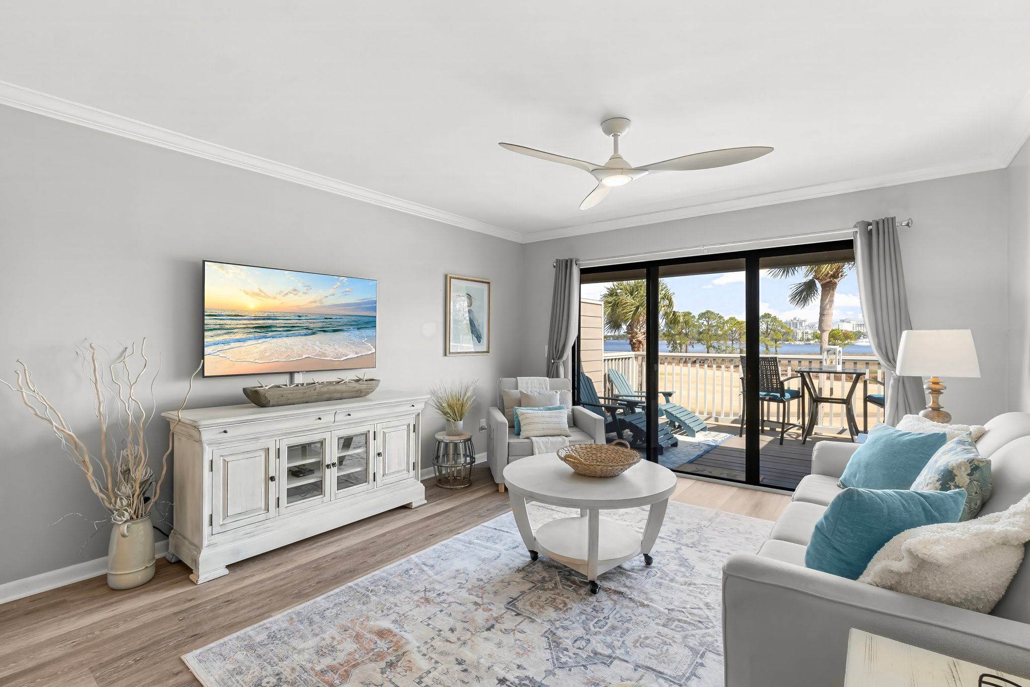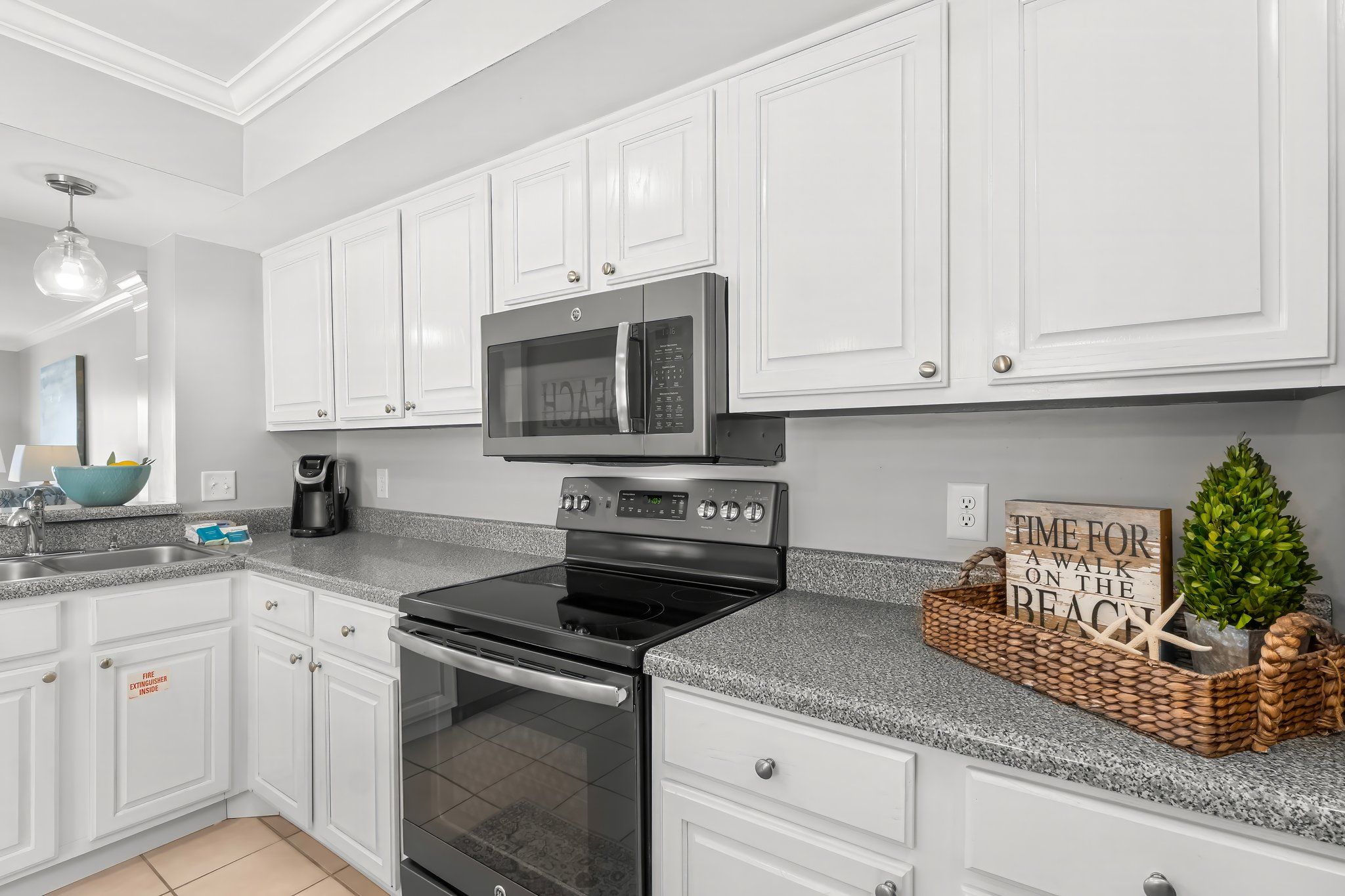 Walk into this second floor condo and leave your troubles at the door with white cabinetry in the full kitchen, alongside high end décor with neutral tones for that classy feel. Host a meal in this open concept space or simply enjoy a beverage on your private balcony, featuring comfy seating and bay views that will relax your soul. After a long day, cozy up in this one bedroom sanctuary that features a king bed, plush bedding, storage and laundry for longer stays, and a bath with a walk-in shower. Let your guests stay on the queen sleeper sofa or twin sleeper chair in the living room, so you can enjoy the area with family and friends for the duration of your trip.