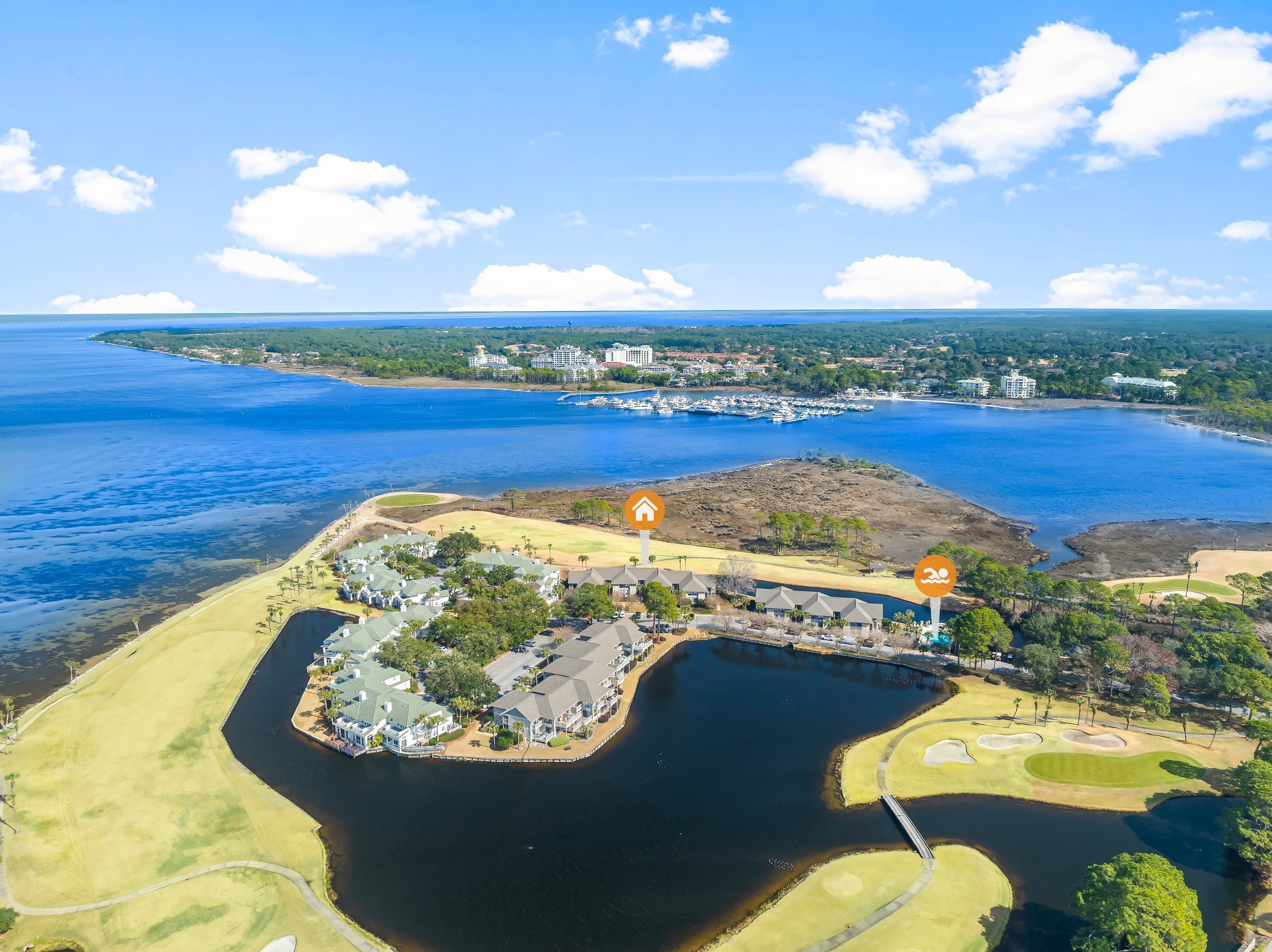 Located on a private cul-de-sac between the Choctawhatchee Bay and The Links Golf Club is the vacation sanctuary of Harbour Point. This private community is surrounded by lakes, lush greenery, and a quiet atmosphere with bay views for miles. The Harbour Point rentals are situated in multi-building condos offering decks and balcony spaces in each. When you become a Harbour Point guest, you’ll have access to the gated community pool, located right on the water, with first come first serve parking. While the property itself is secluded, it’s just minutes away from the Village of Baytowne Wharf and a short ride to Miramar Beach. Amenities such as golf, tennis, biking, boating, water sports and more are available locally at additional costs.