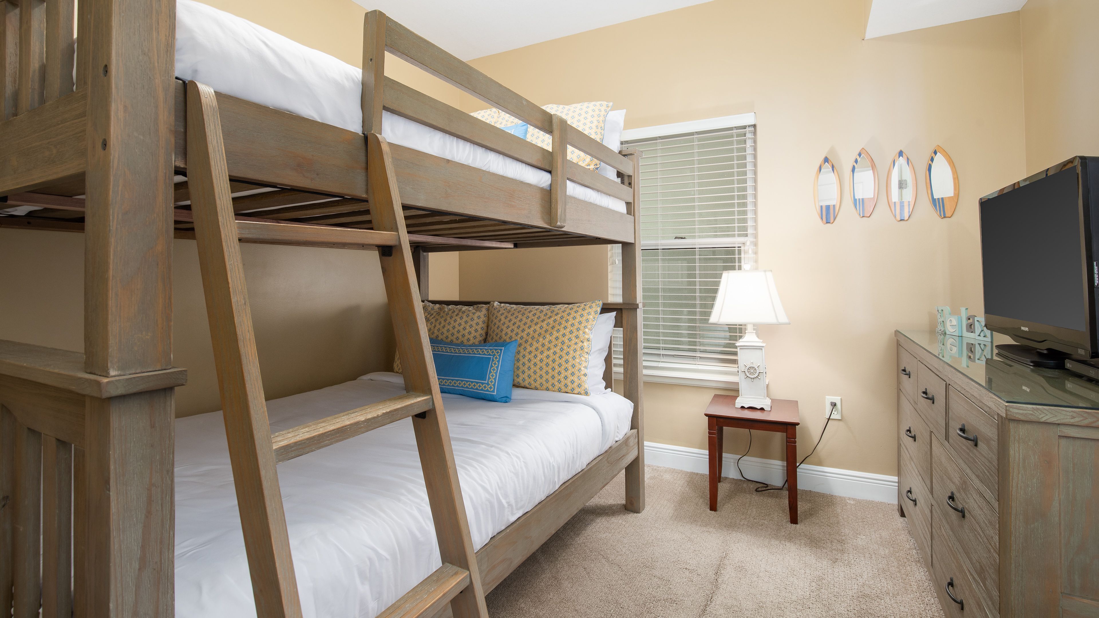 One Story Unit | Master, King Bed; Guest 1, Queen Bed; Guest 2, One set of Bunk Beds with Two Full Beds; Living Area, Sleeper Sofa