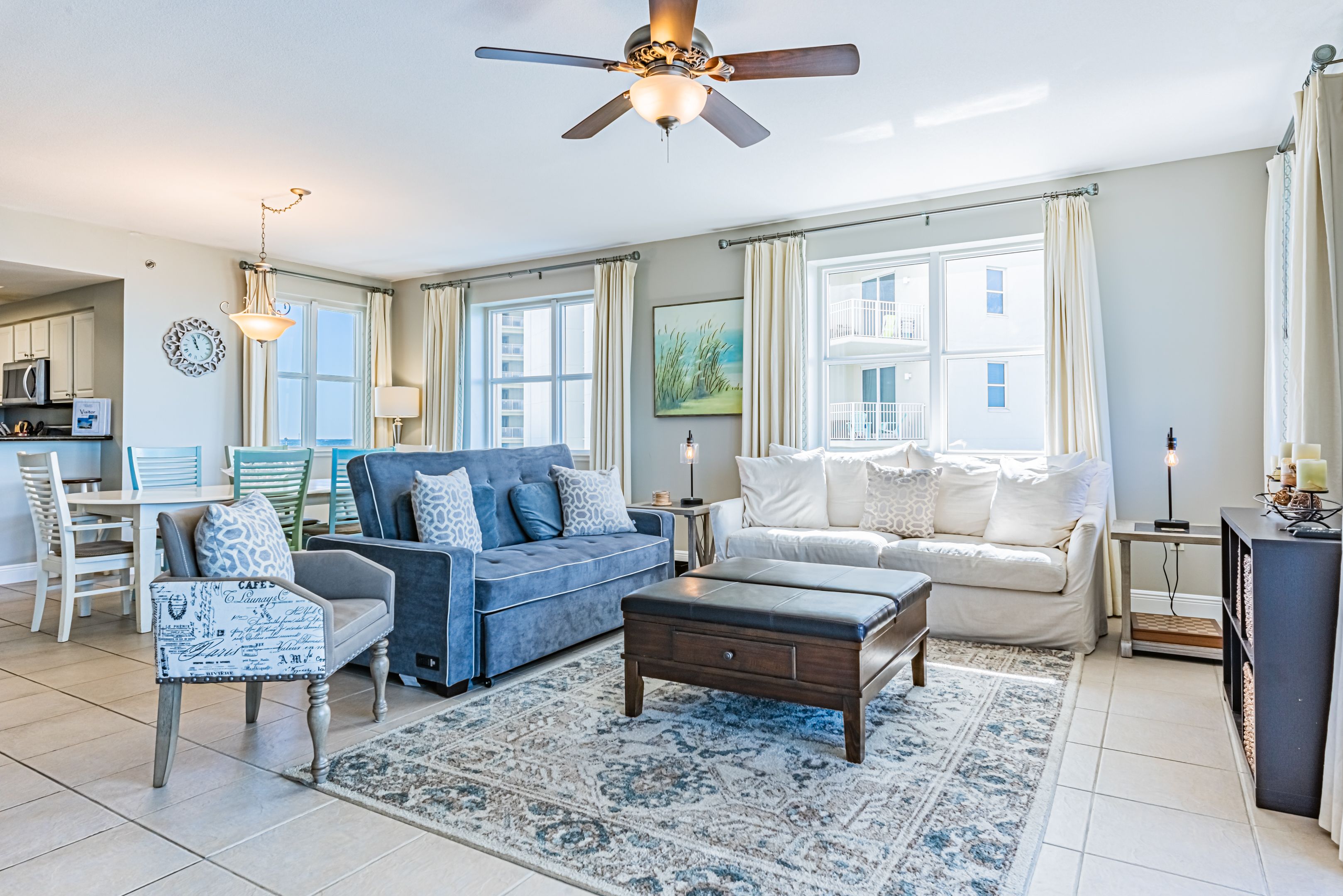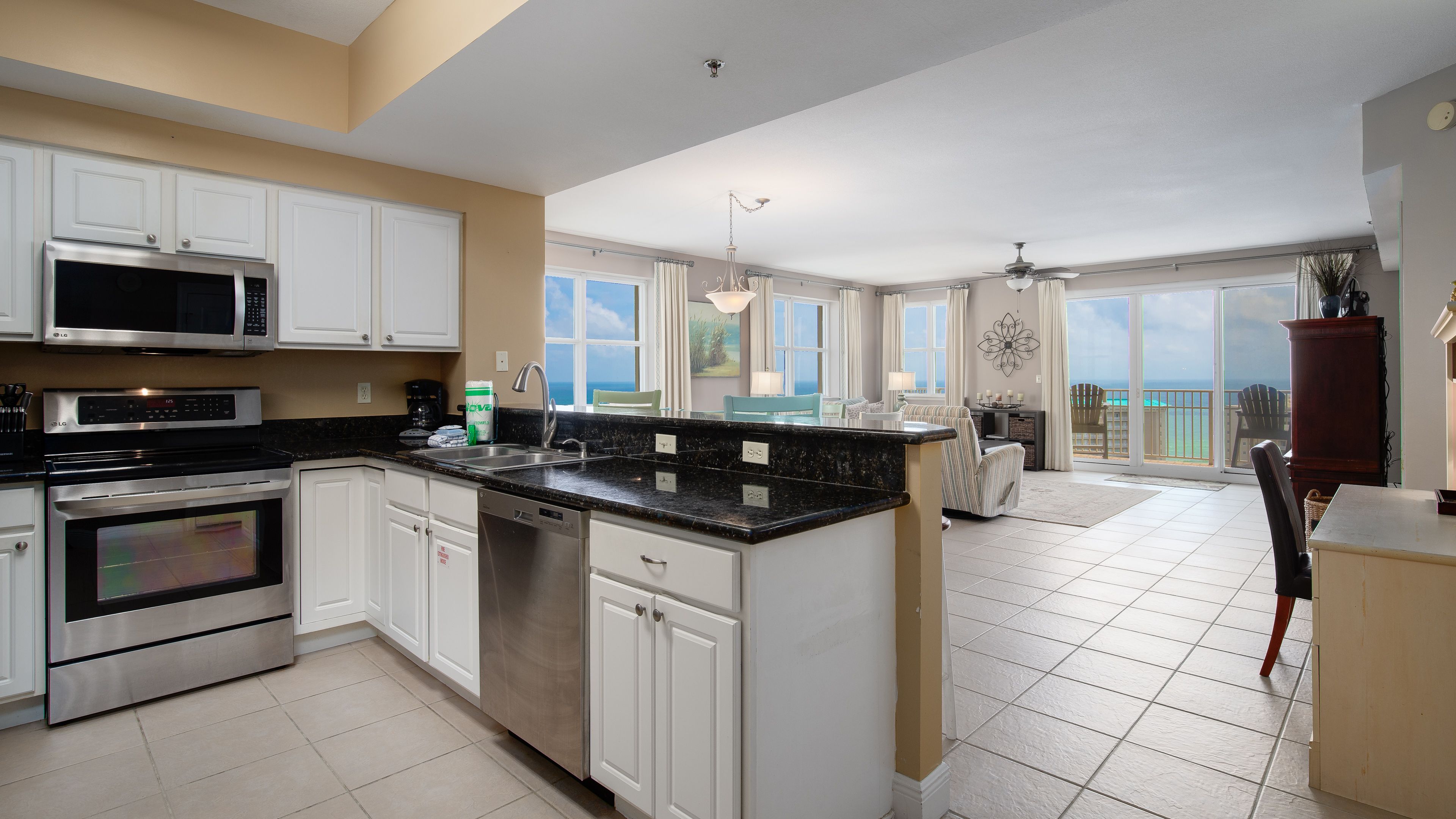 Host up to 8 guests in style and comfort with this beach retreat’s open floor plan. High end furnishing in neutral, coastal hues make relaxing inside a breeze. Relax, dine and cook together between the kitchen, dining and living room areas. Each are surrounded with large windows and balcony access to those beautiful views.