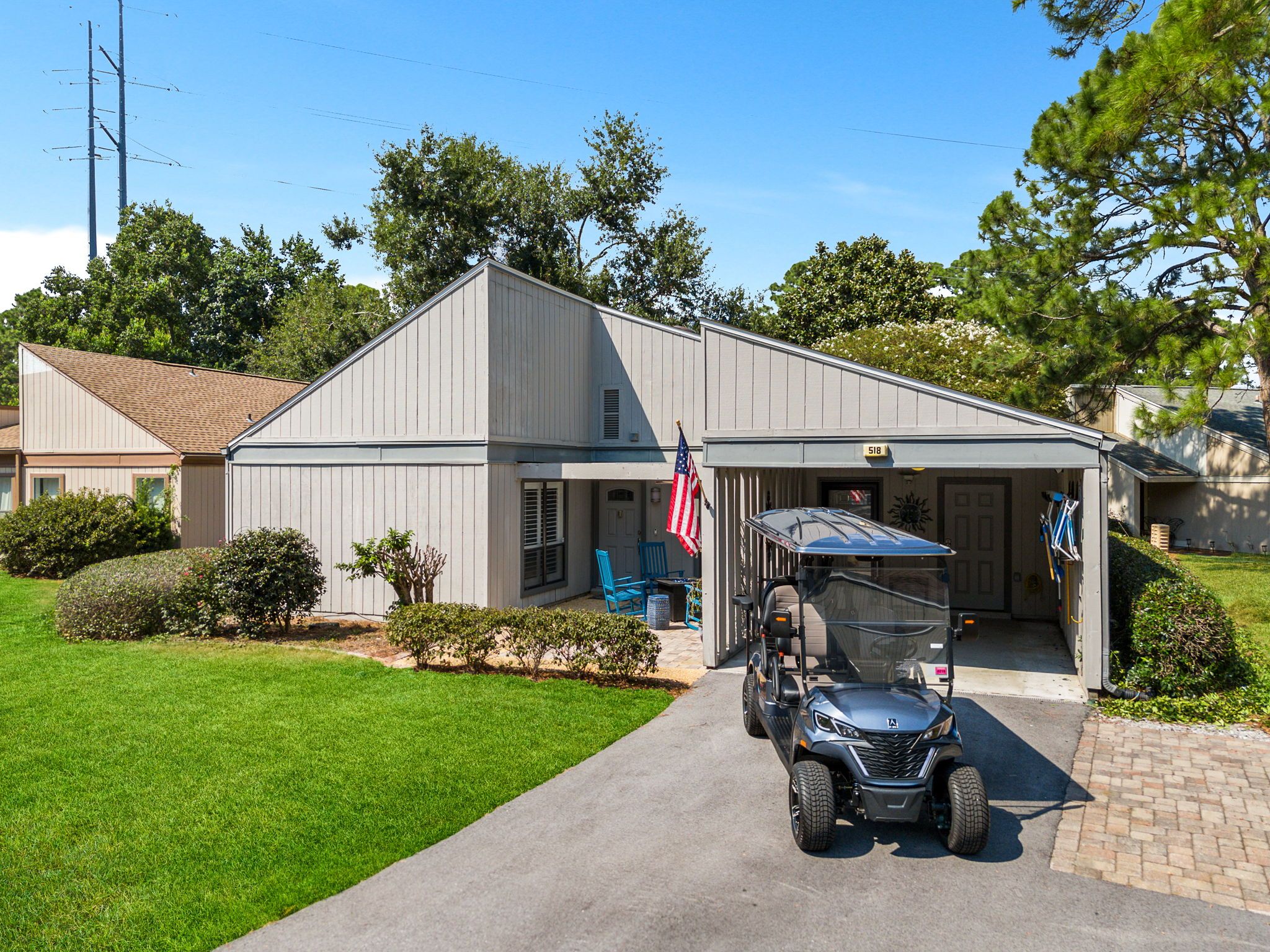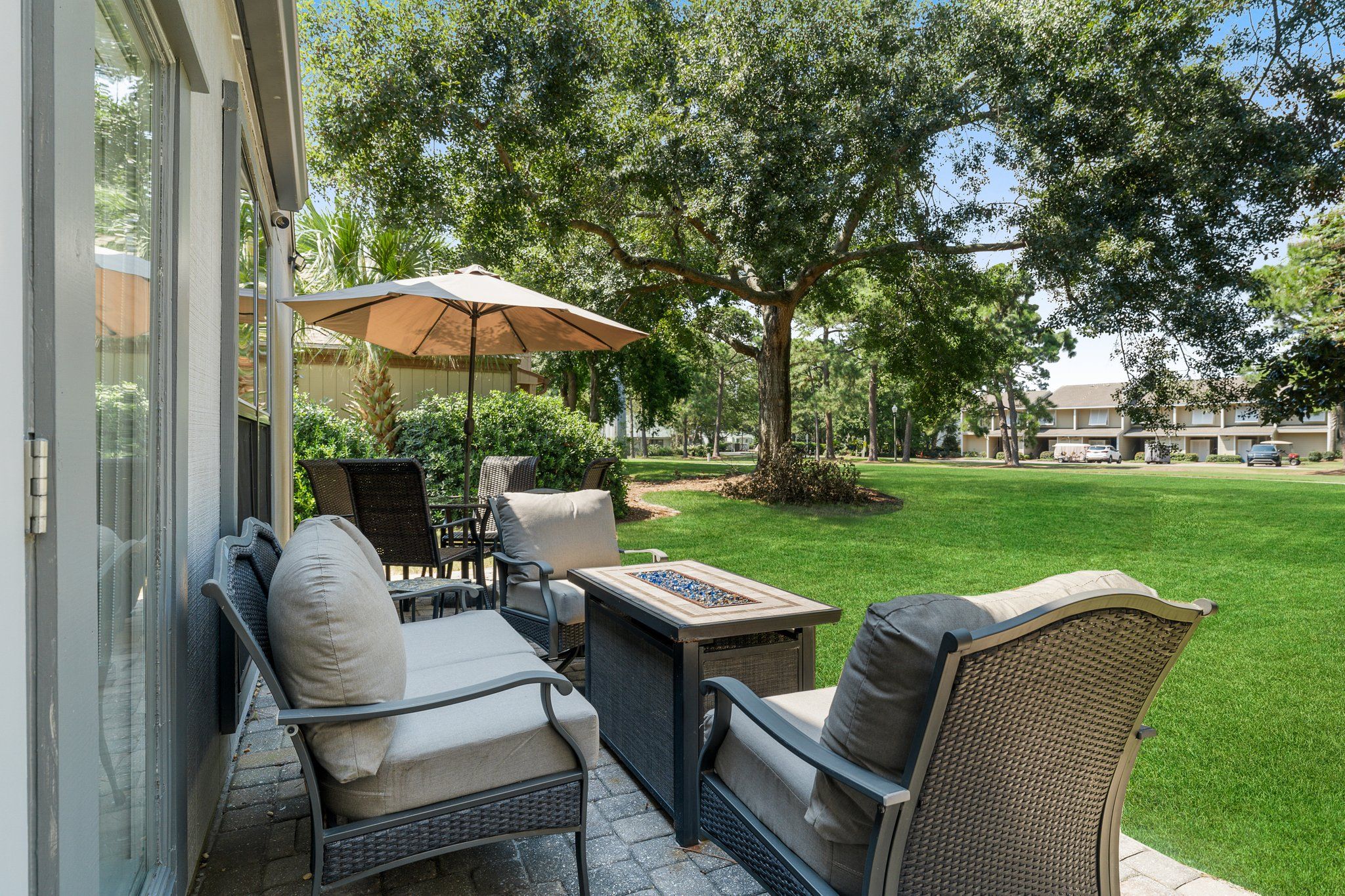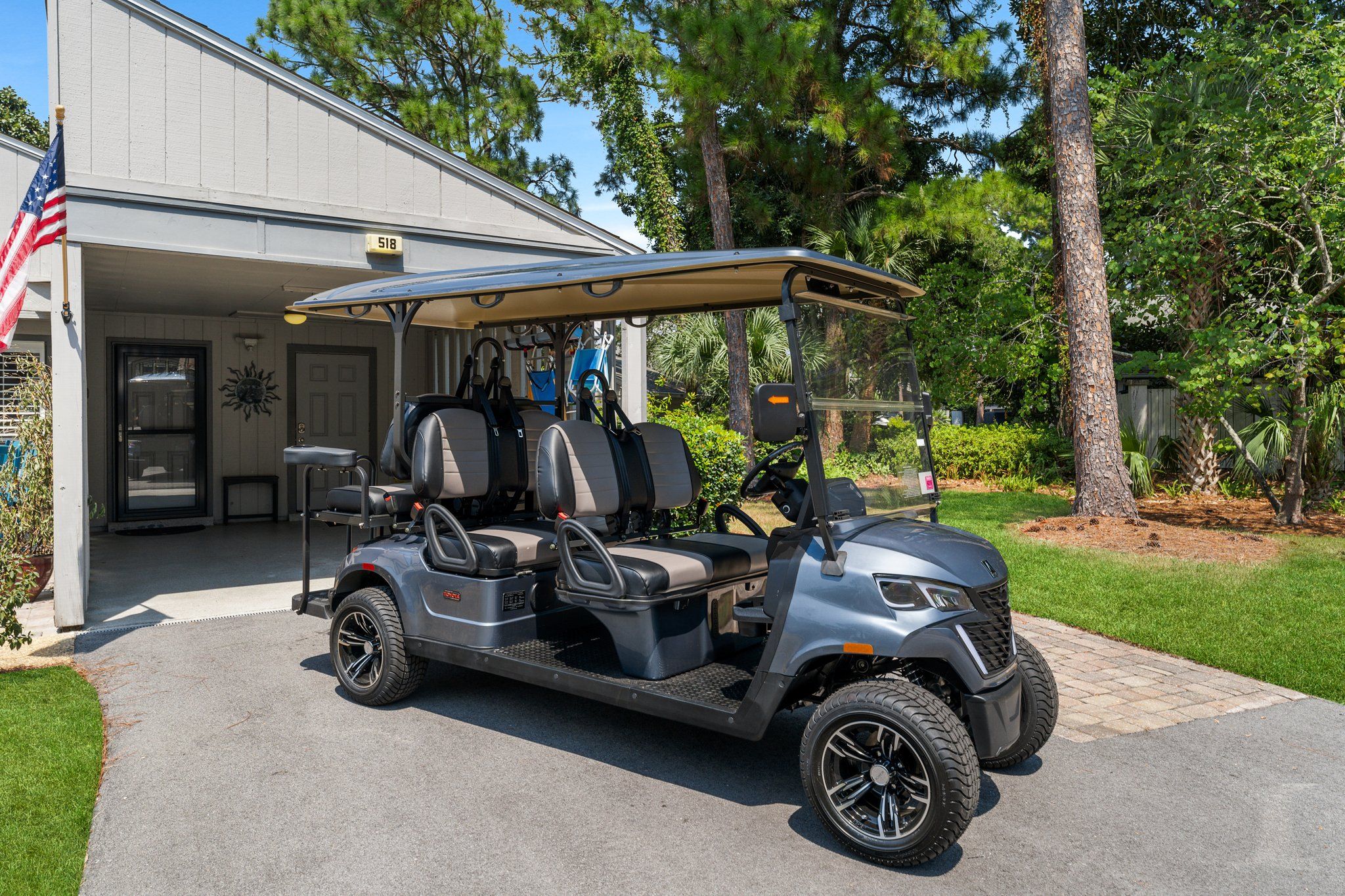 Unit Amenities- 6 Seat Golf Cart, Patios, Propane Grill and Firepit, Laundry, Parking in Driveway