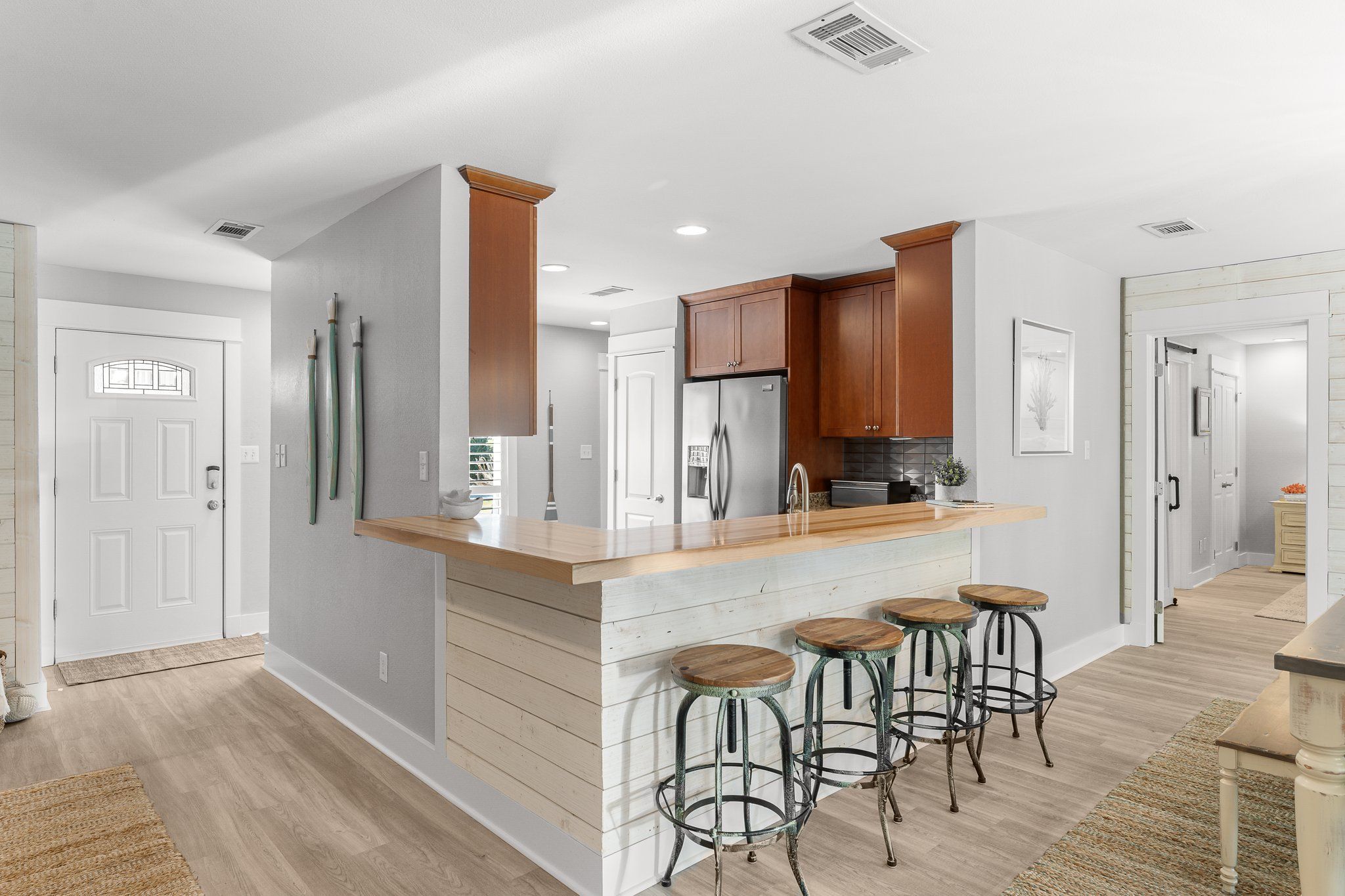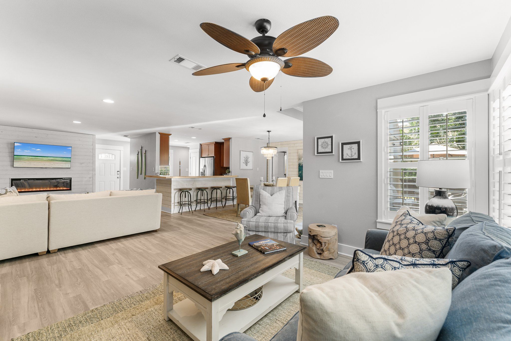 In the morning, take your coffee outside to one of your private backyard patios, or slip outside in the evening to soak in the cool evening Gulf breezes. Live the true coastal life from this welcoming vacation retreat, perfect for creating lasting winter memories in a setting that combines comfort, style, and everything you need for your snowbird escape or holiday gathering.