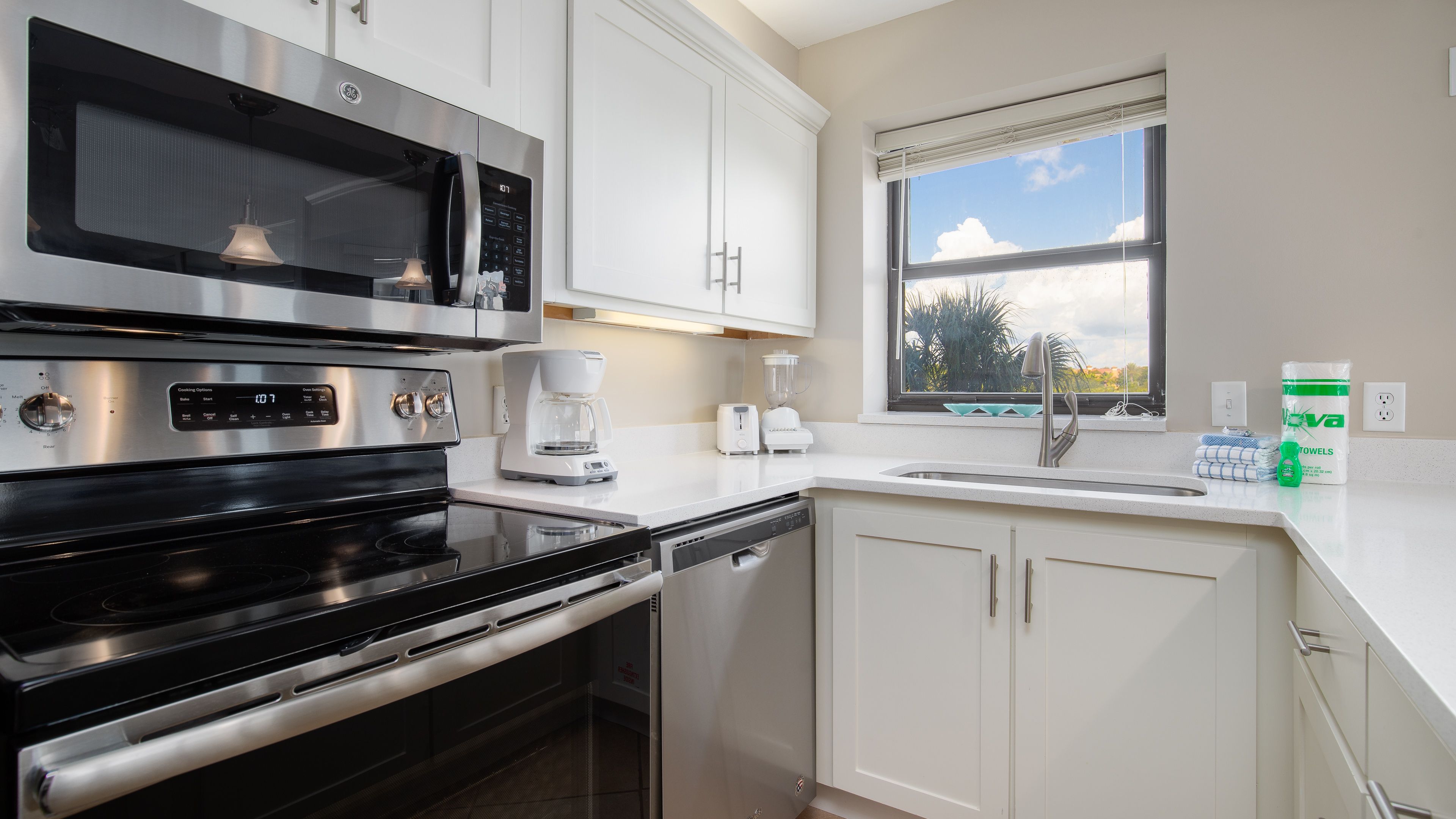 Featuring a living area, queen sleeper sofa, dining area, full kitchen, king bed, full bathroom and an extra sleep room with a full bed and flat screen TV, this condo is comfortable and immaculately clean. The kitchen comes with all the modern appliances you could need on a beach vacation. Your own washer and dryer is tucked away in the unit, leaving plenty of floor space.