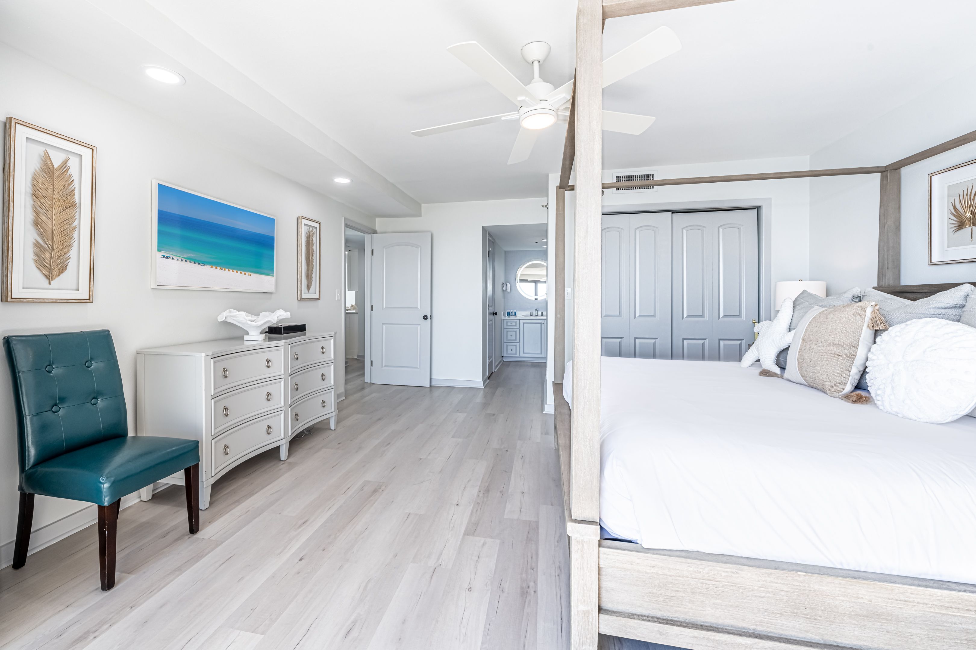 At the end of the day, retreat to the master suite to relax to the sounds of the gulf. The guest bedrooms offer welcoming accommodations for friends and family, while the sleeper sofas provide added flexibility. With two full bathrooms and an in-unit washer and dryer, this vacation rental ensures your stay is as convenient as it is luxurious.