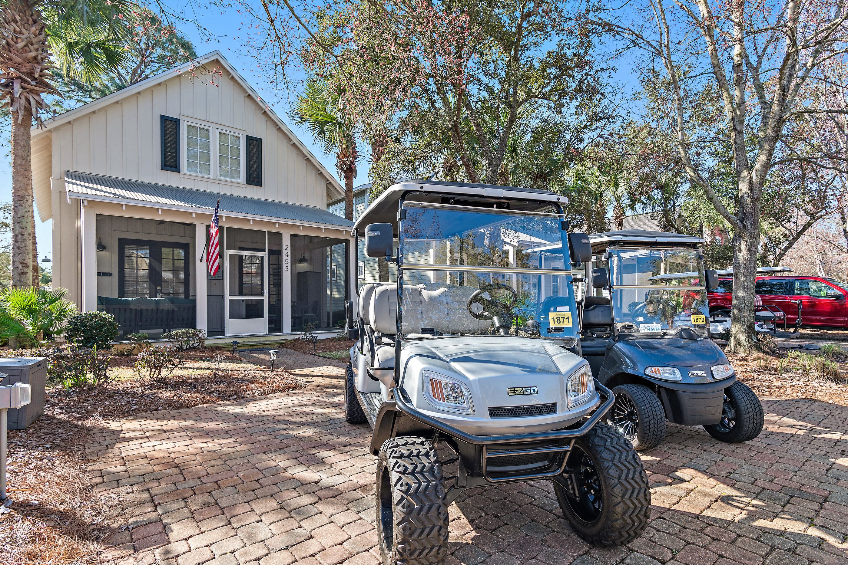 2453 Bungalos did not disappoint. This unit is immaculate. Everything in its place, beds are super comfy, love the large showers and large closets. Having both of the golf carts made commuting anywhere on the property a breeze. We will definitely be back again next summer.