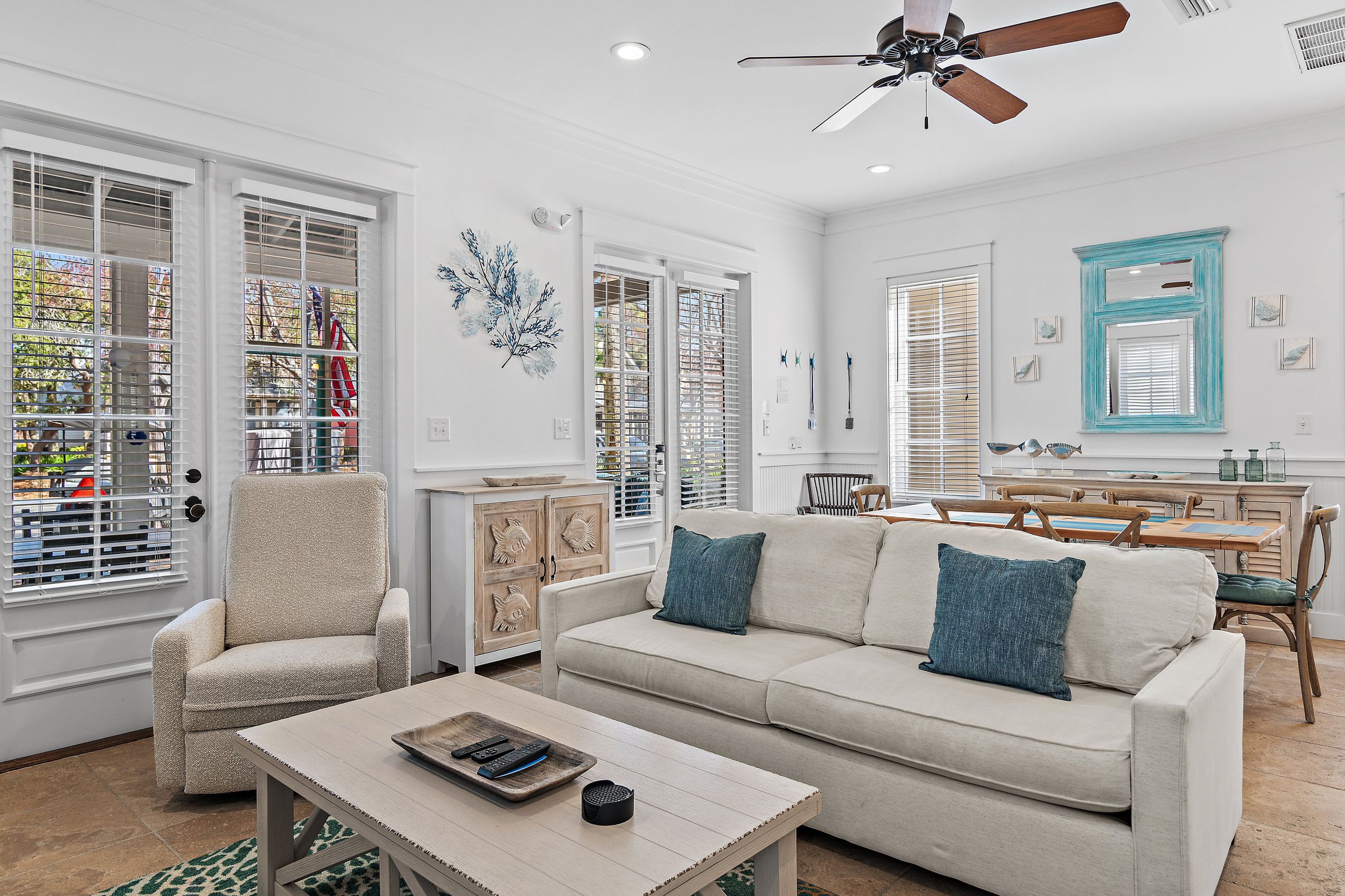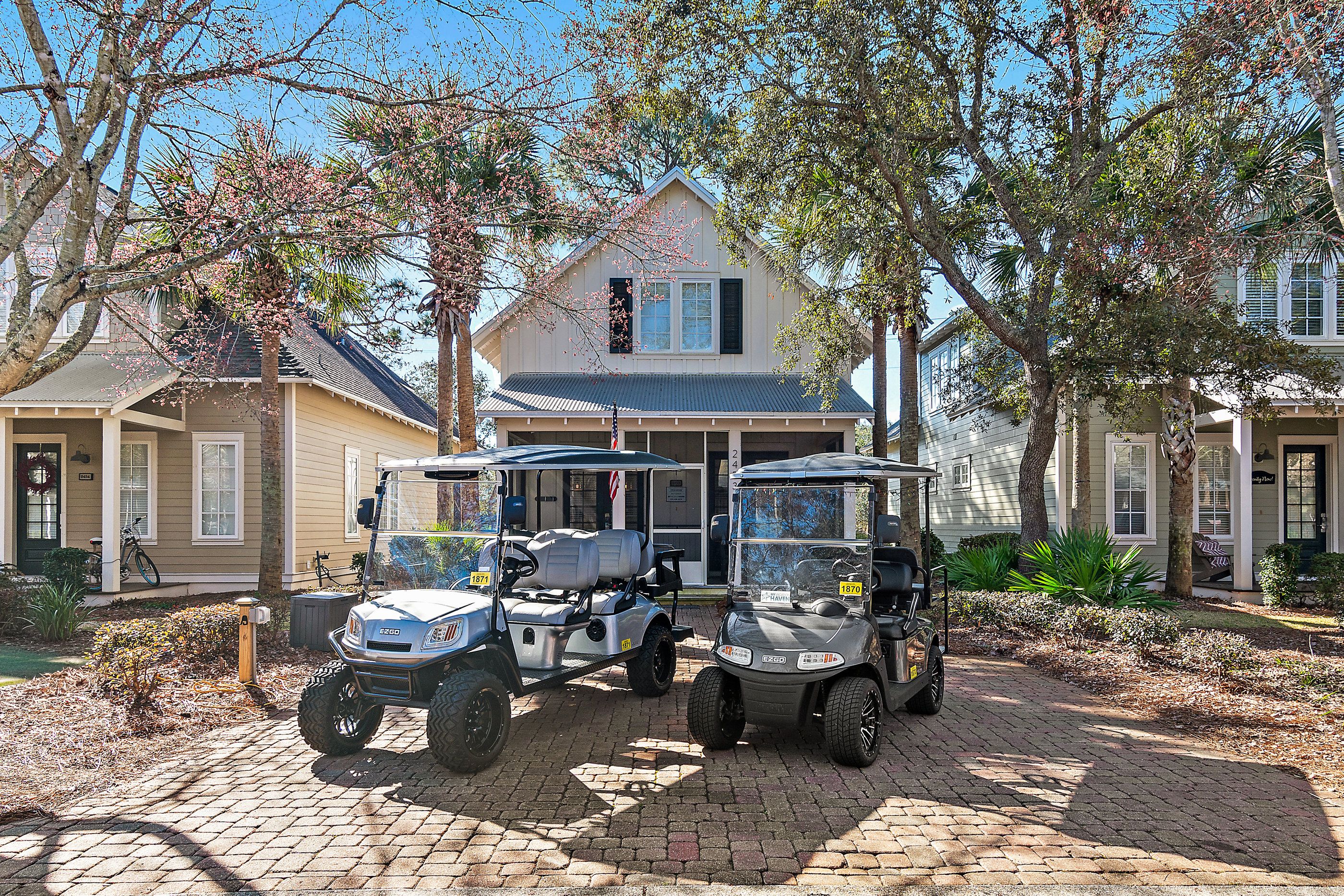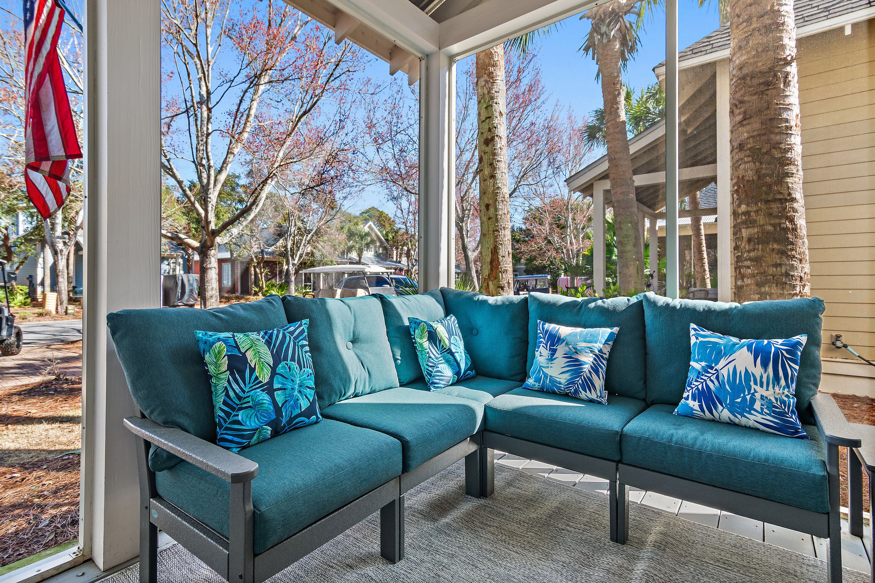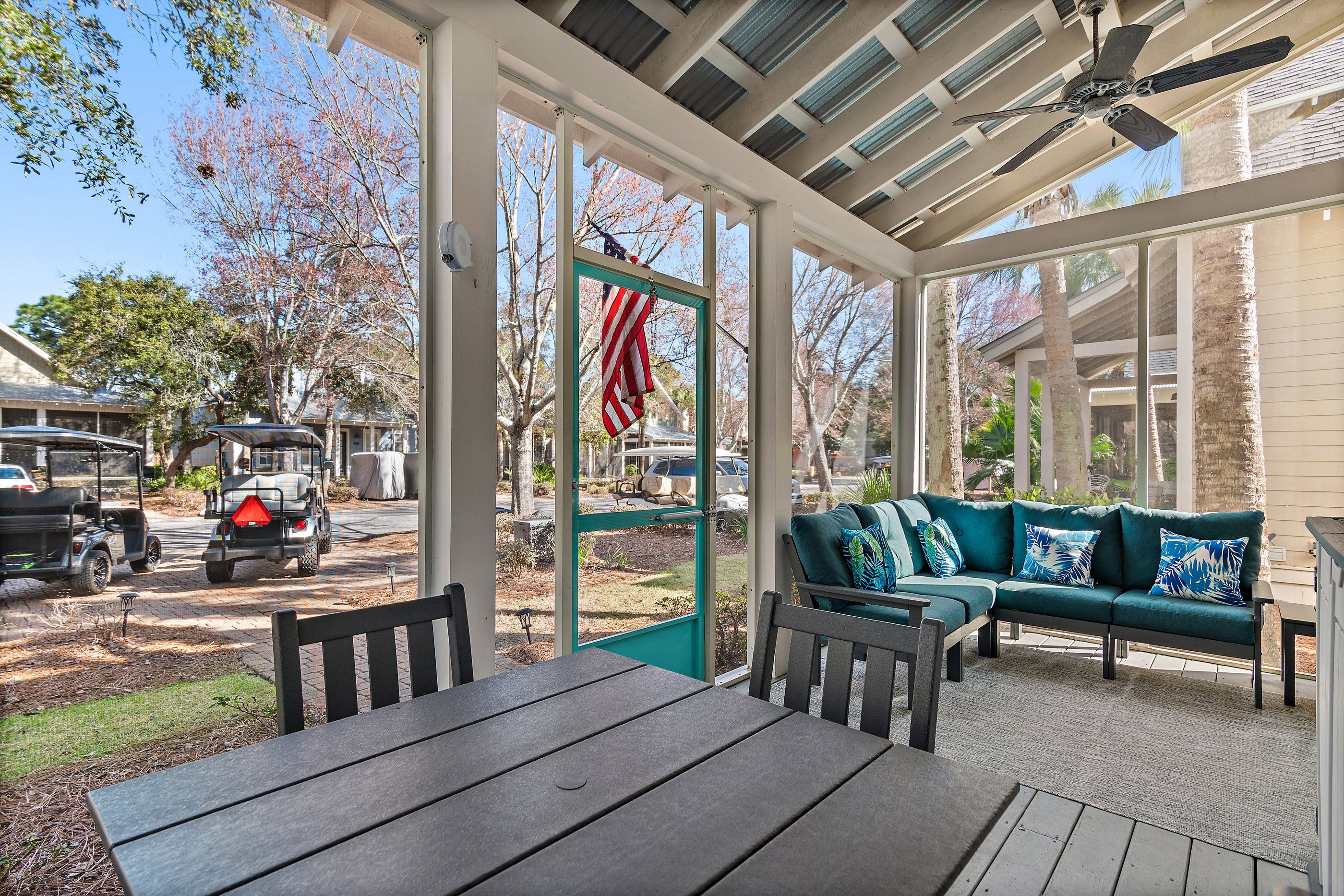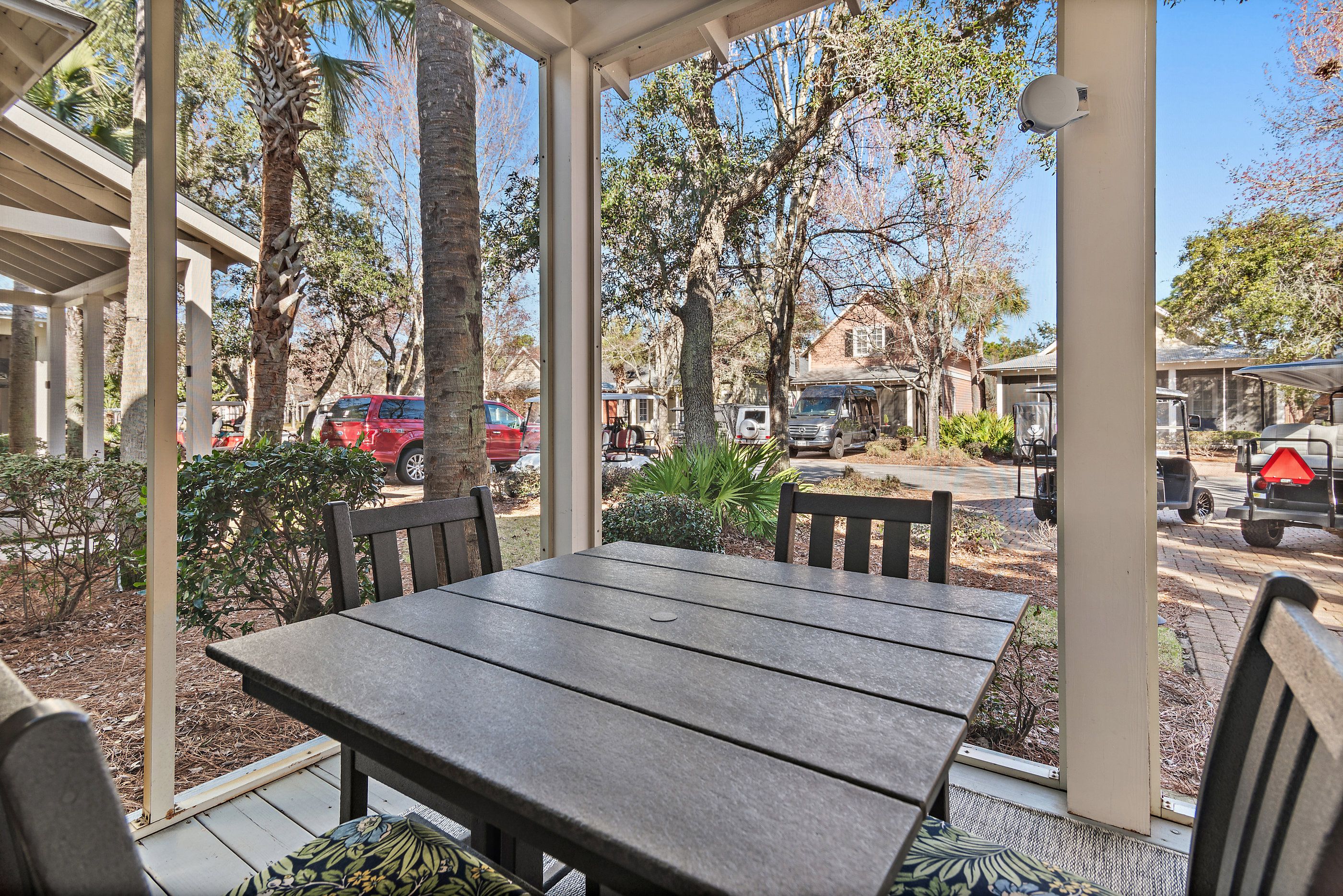 Beyond the beautiful interiors, the home boasts a screened porch, offering a serene retreat to enjoy the balmy Florida air. Included with your stay are two golf carts—a 4-seater and a 6-seater—ready to whisk you away to the beach, the vibrant Village of Baytowne Wharf, or any of the countless activities the Resort has to offer.