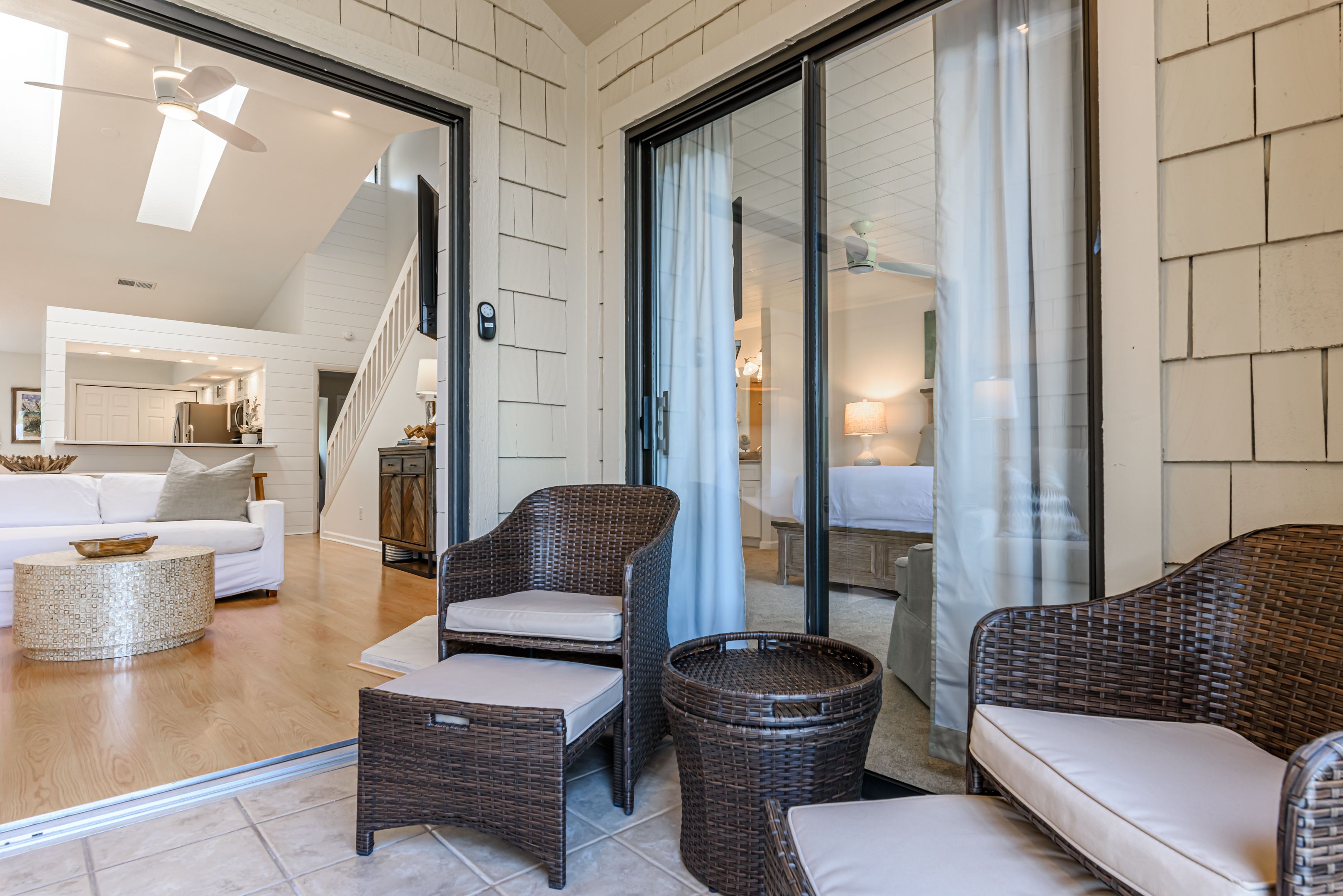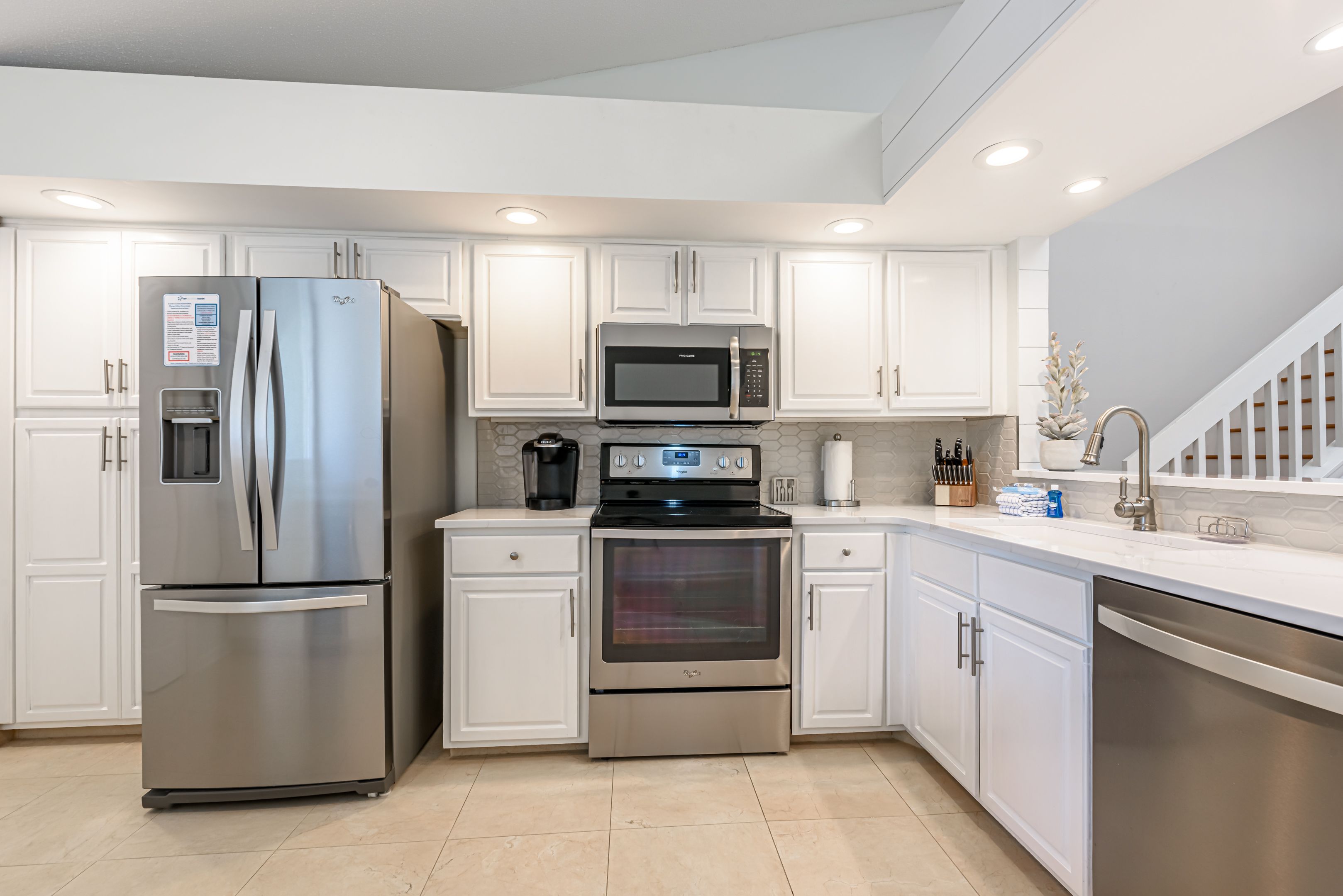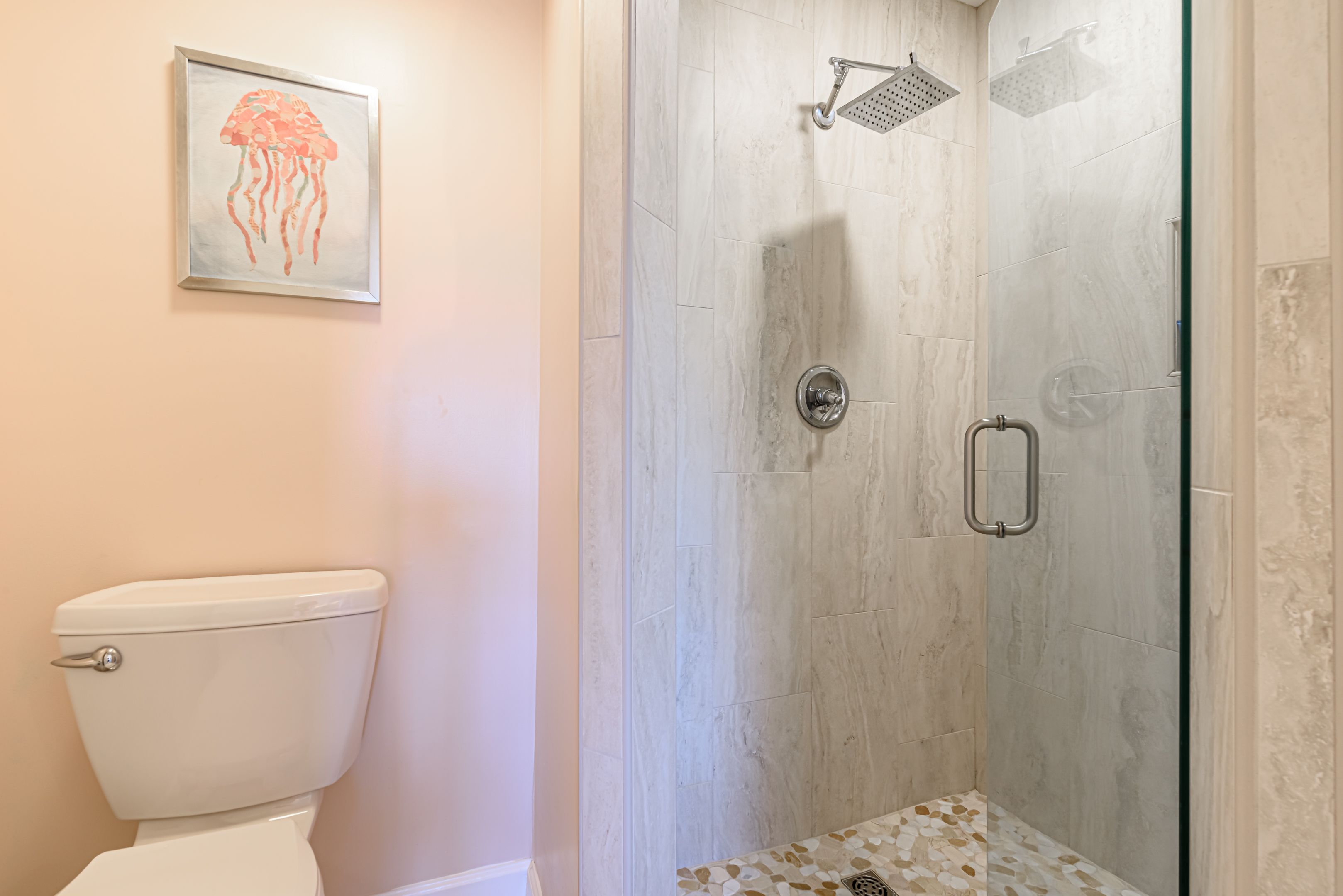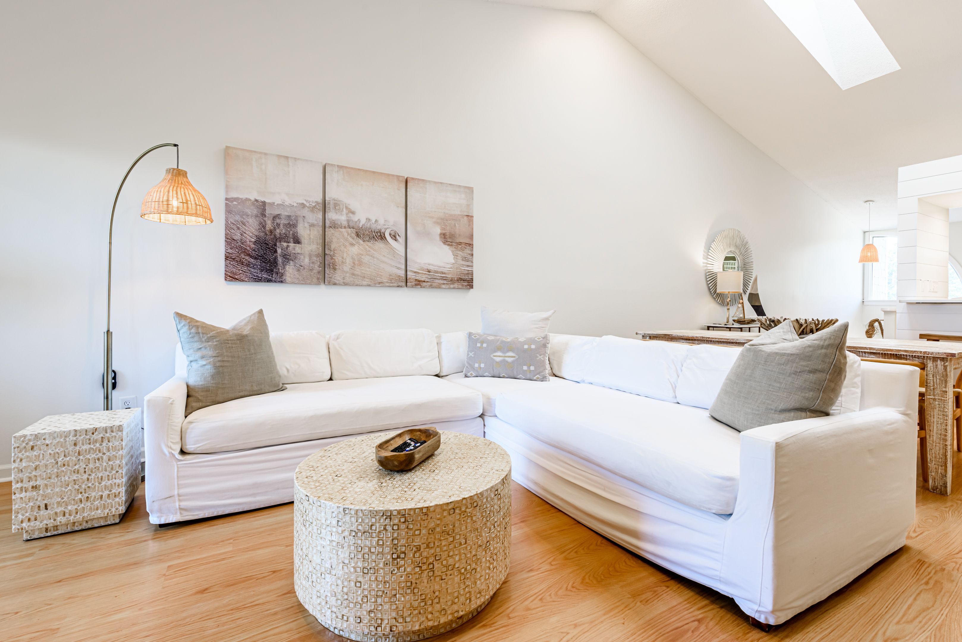 When it comes to sleeping arrangements, home can sleep up to 8 guests comfortably. On the first floor, you’ll find both guest rooms, each featuring private baths for maximum comfort. Upstairs, you’ll find the master suite with king bed, double vanity, tub/shower combo, and lots of closet space.