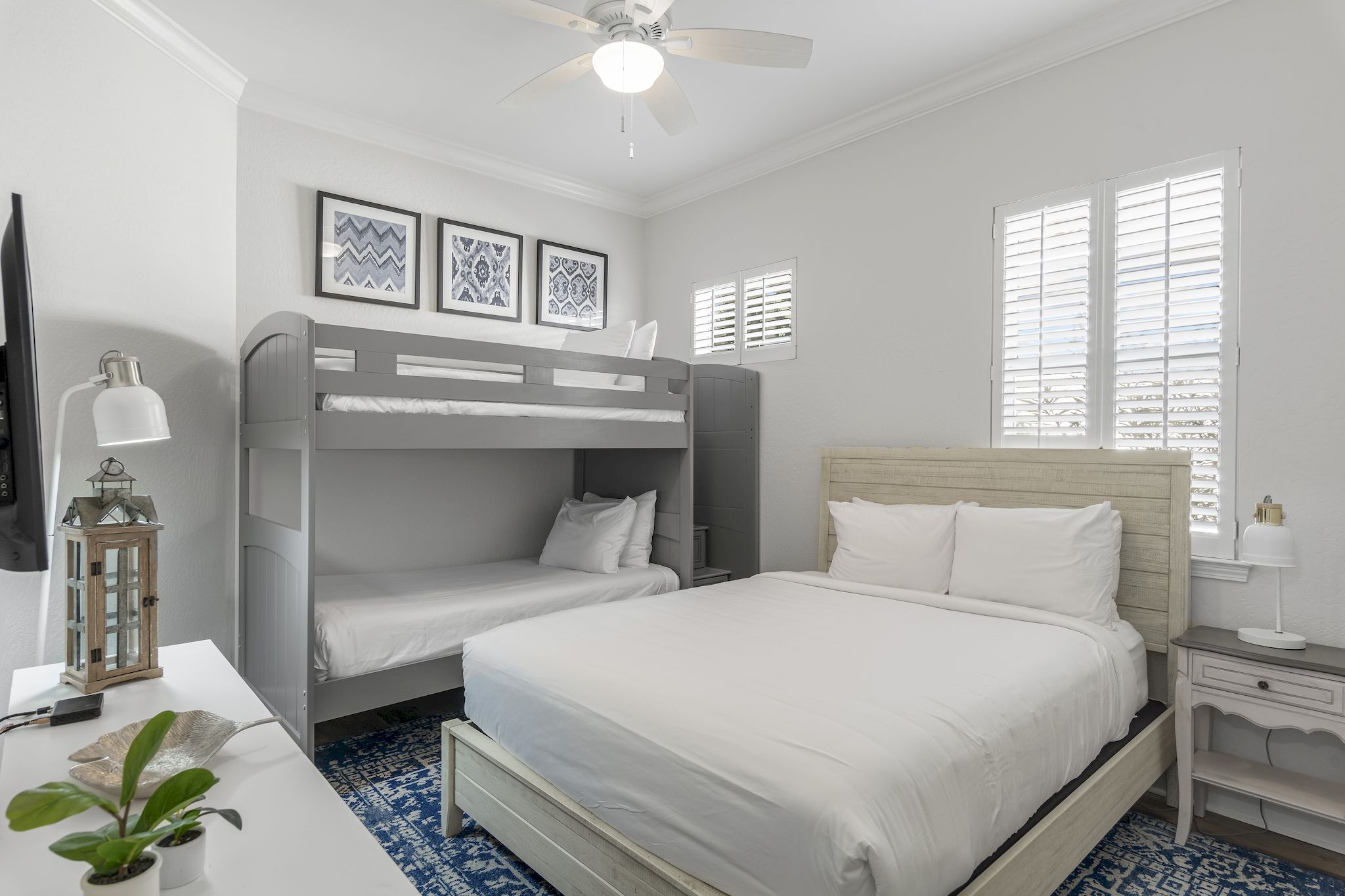1 queen bed, 1 bunk bed