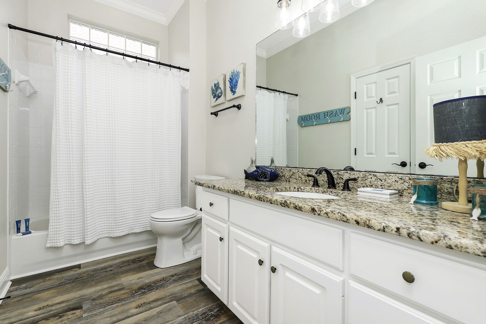 When it comes to loved ones, everyone will have comfort and space they crave. This home sleeps 8 comfortably, but may be able to accommodate up to 12. The master bedroom has a king bed and private bathroom with separate shower and bath tub. The first guest bedroom has a queen bed and a twin over twin bunk bed with an attached bathroom. The second guest bedroom also has a queen bed and a twin over twin bunk bed with access to the hall bathroom.