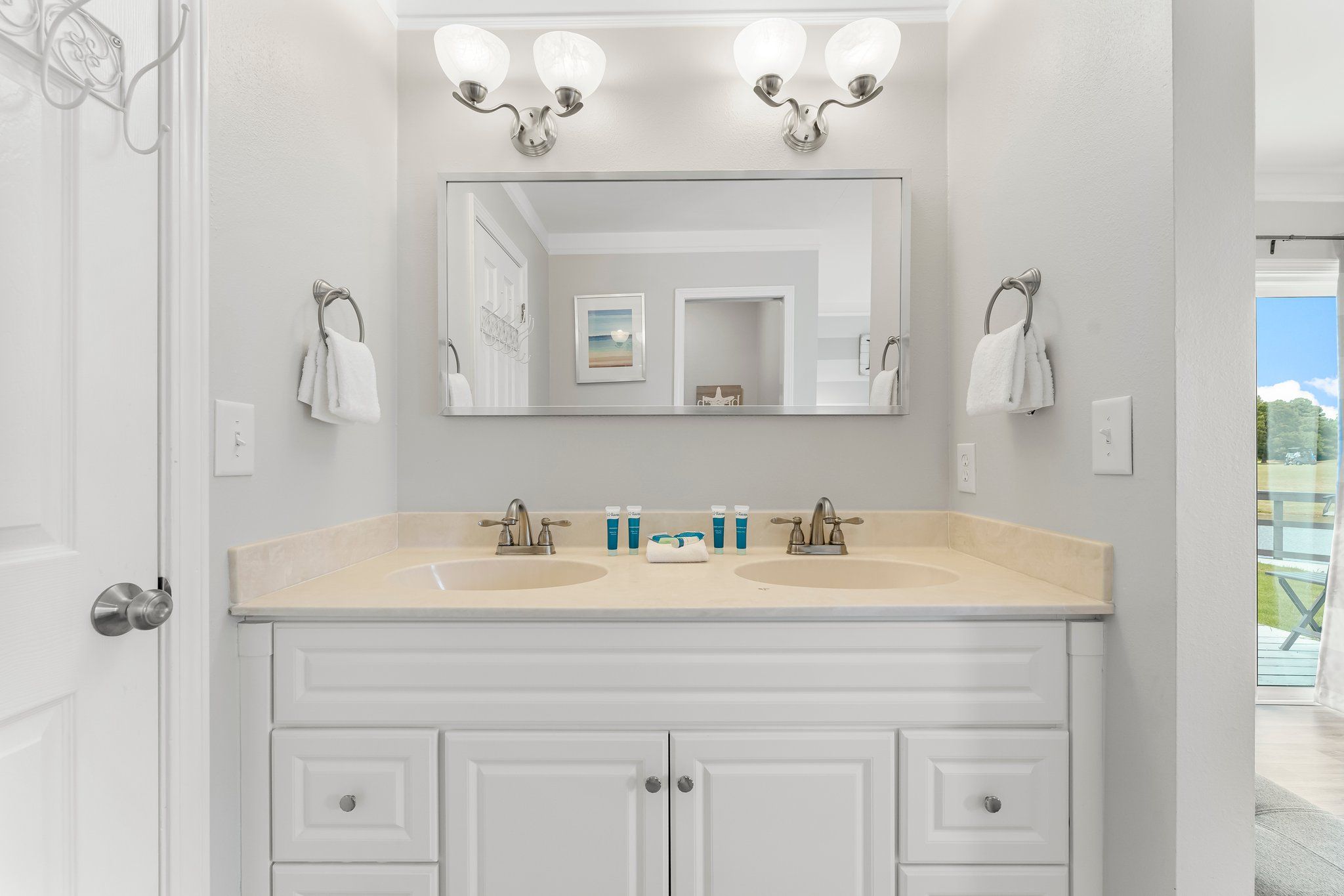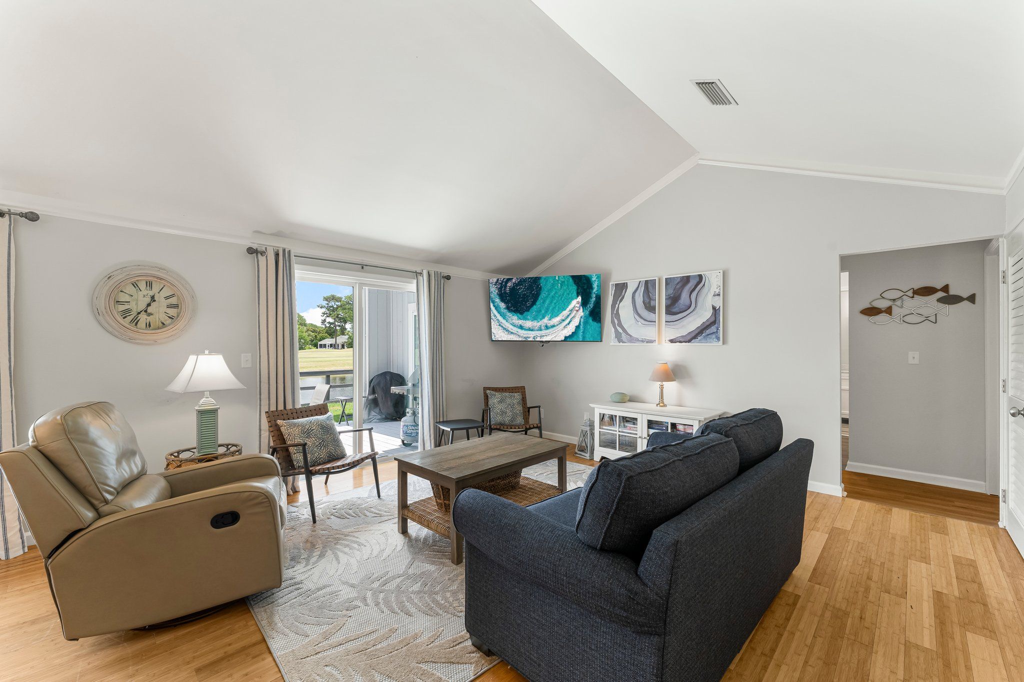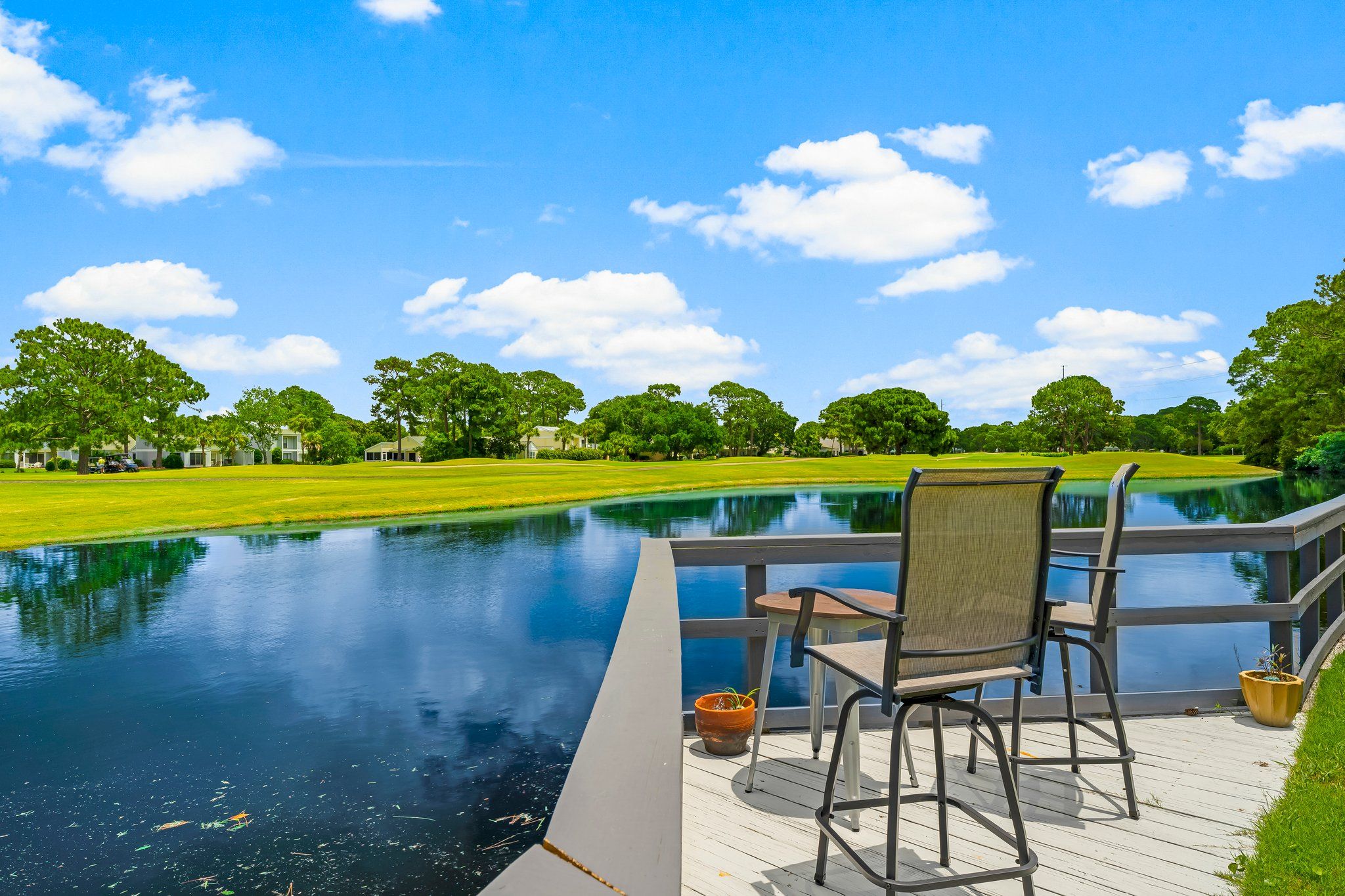 Outdoors, you’ll enjoy a backdoor lakefront patio with beautiful grassy area and deck spaces. Explore all that the resort has to offer in your own golf cart! For more outdoor fun, take a dip in the neighborhood pool or head to the beach – just a few minutes away from this wonderful vacation spot.
