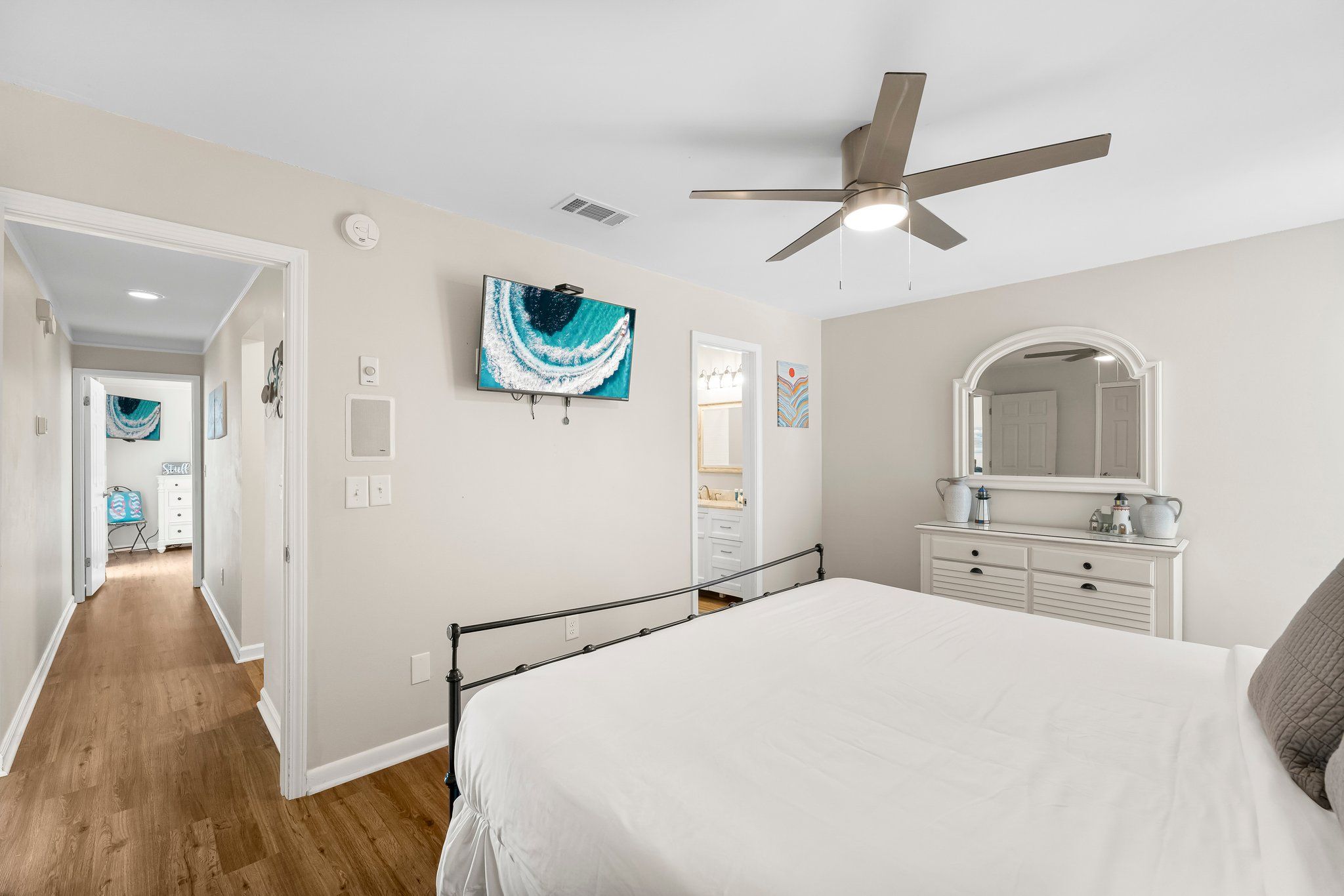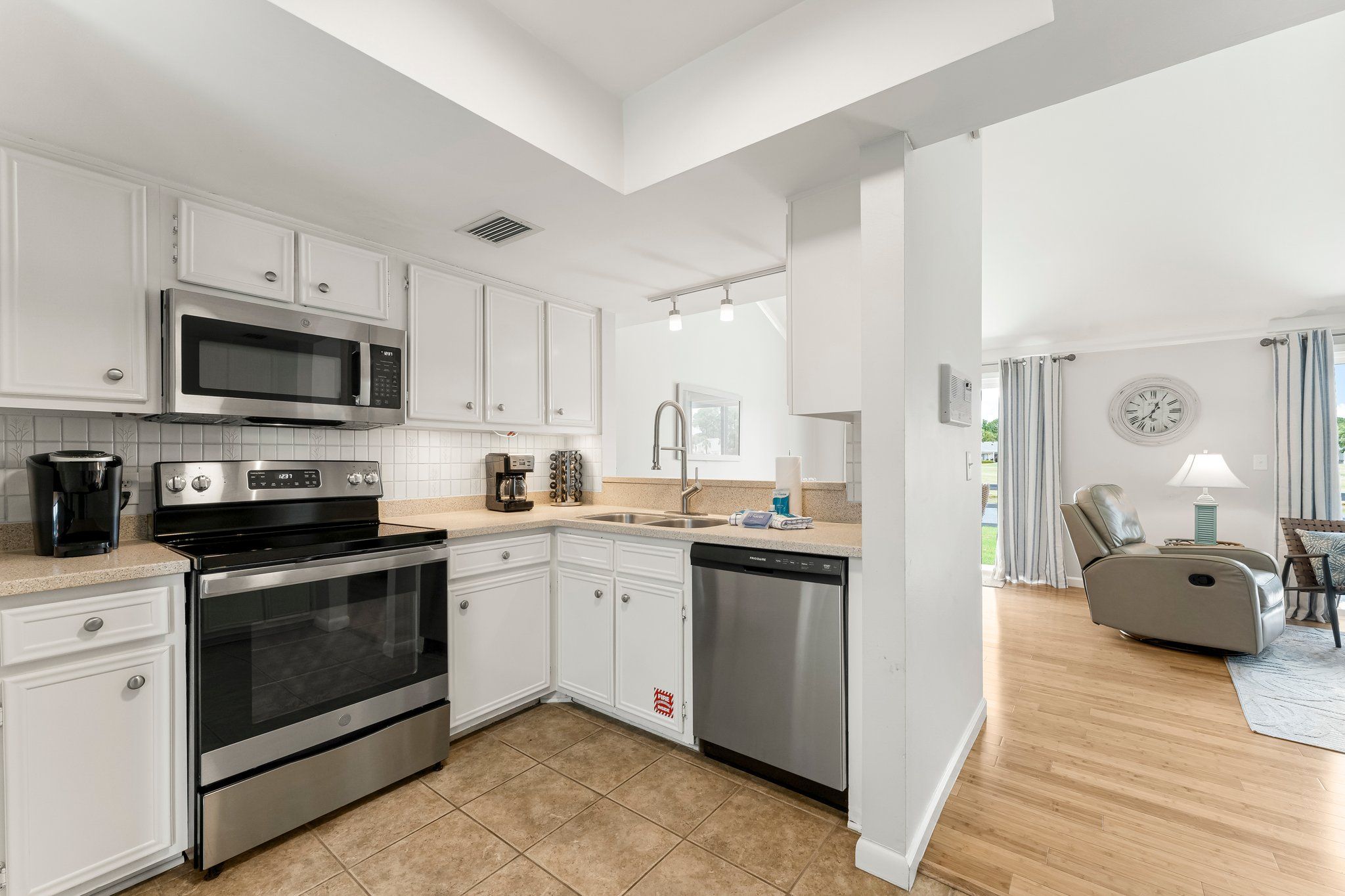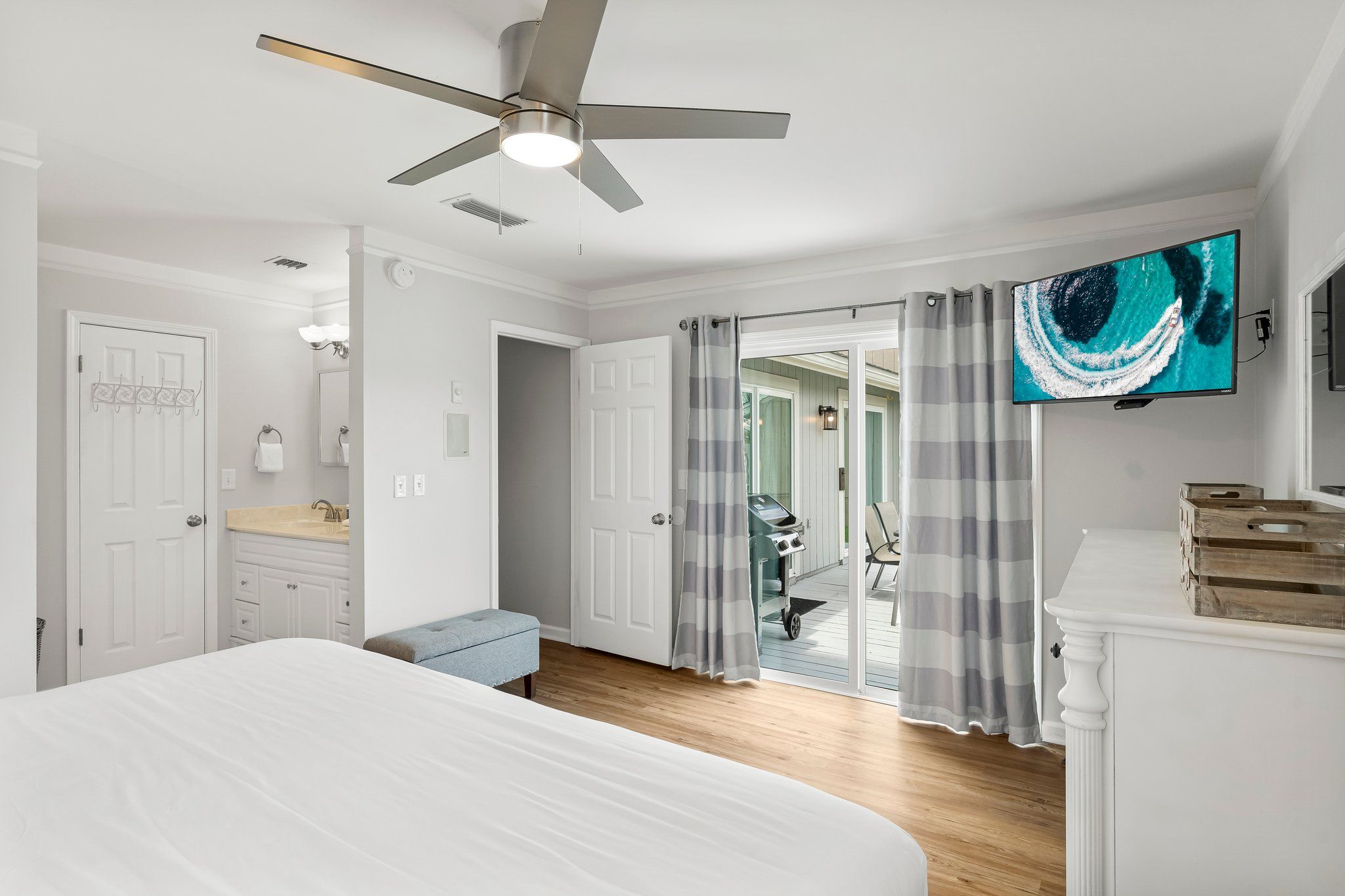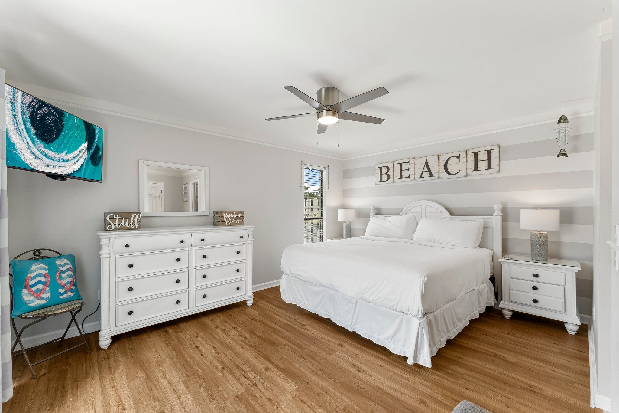 Outdoors, you’ll enjoy a backdoor lakefront patio with beautiful grassy area and deck spaces. Explore all that the resort has to offer in your own golf cart! For more outdoor fun, take a dip in the neighborhood pool or head to the beach – just a few minutes away from this wonderful vacation spot.