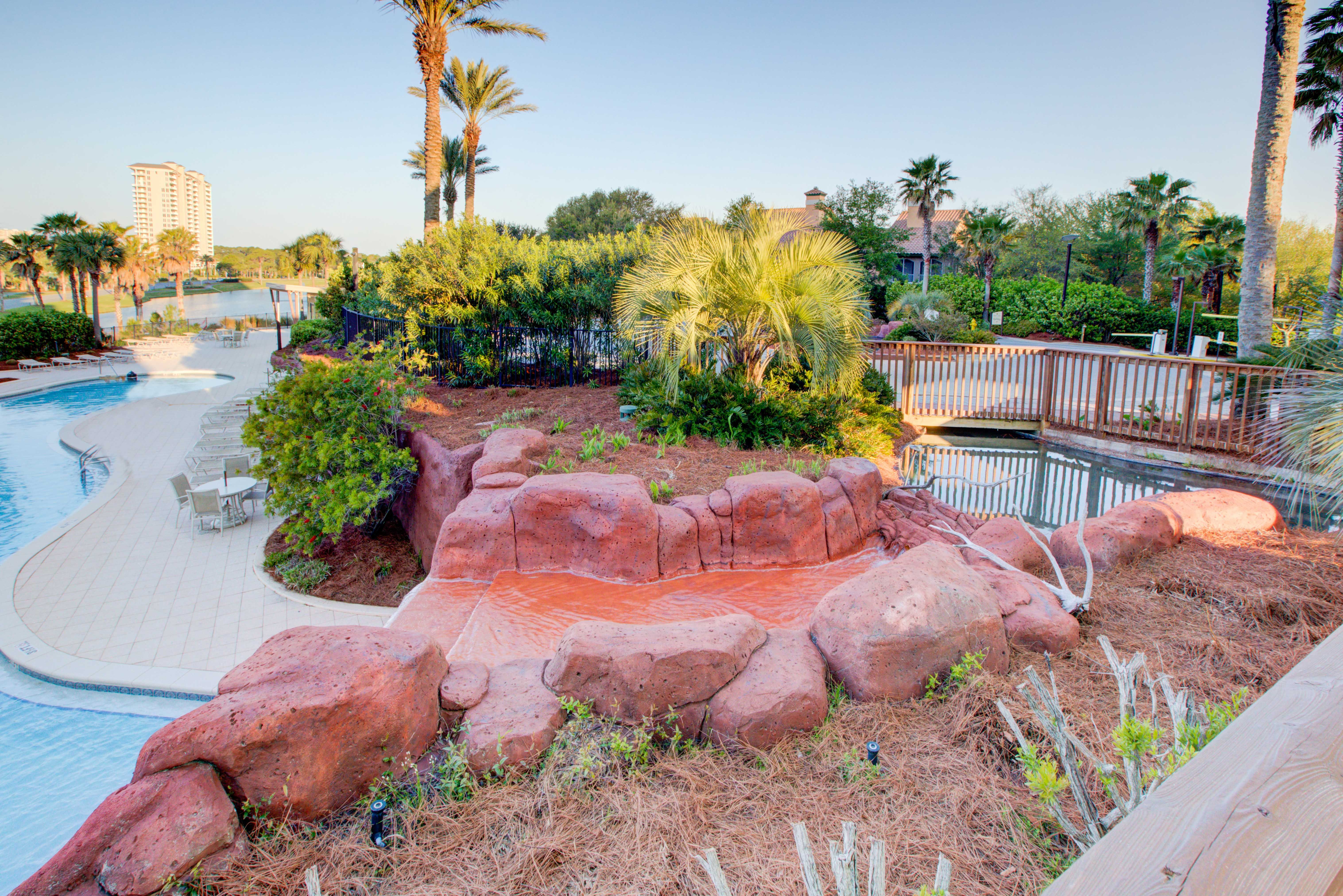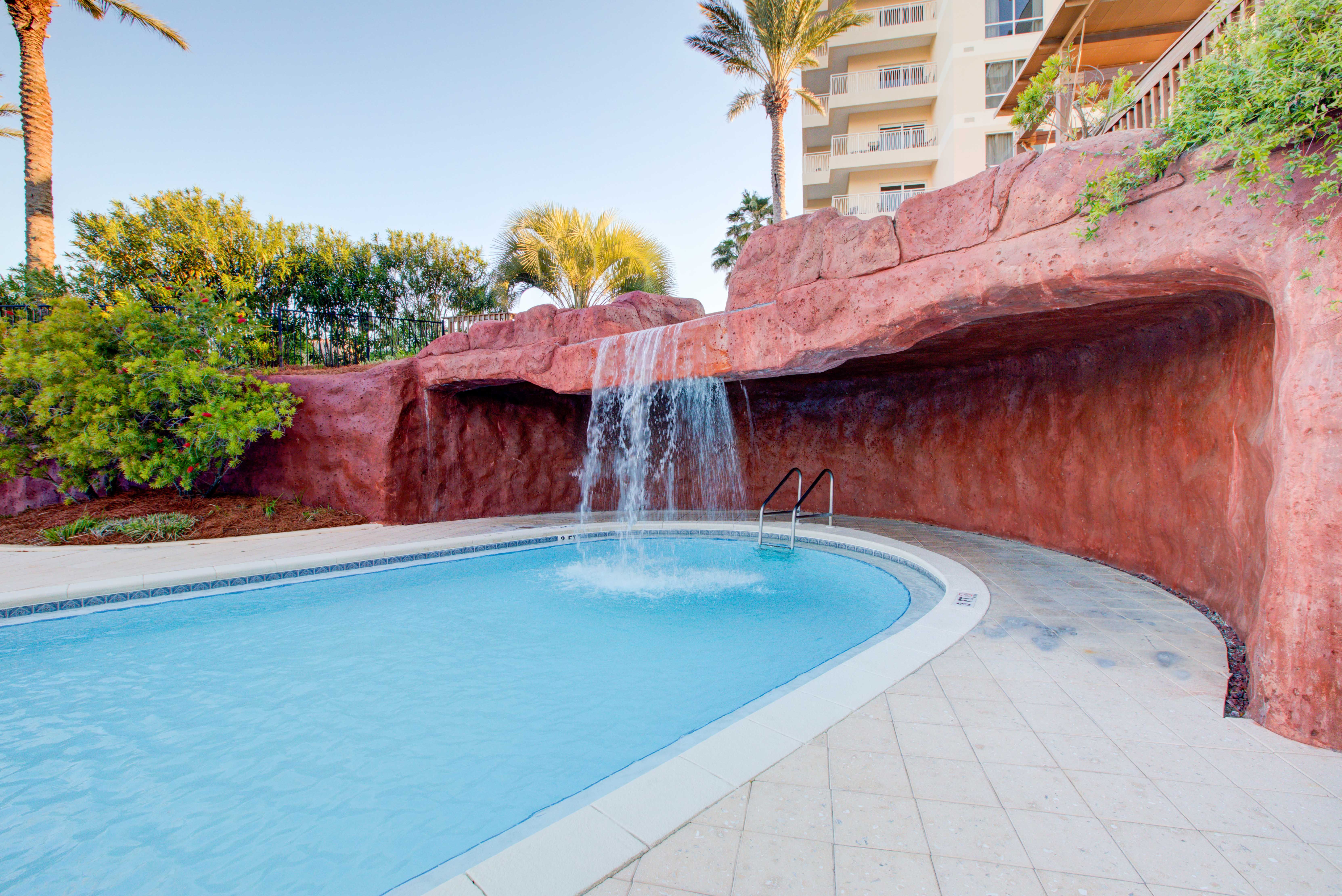 Community Amenities- Gated Partially Covered Parking Garage, Lagoon Style Pool (Seasonally Heated), Kiddie Pool, Hot Tub, Swim-Under Waterfall, Tiki and Snack Bar (Open Seasonally), Community Grilling and Picnic Area, Elevators, Fitness Center, Luggage Carts, Ice Machine, Laundry Room