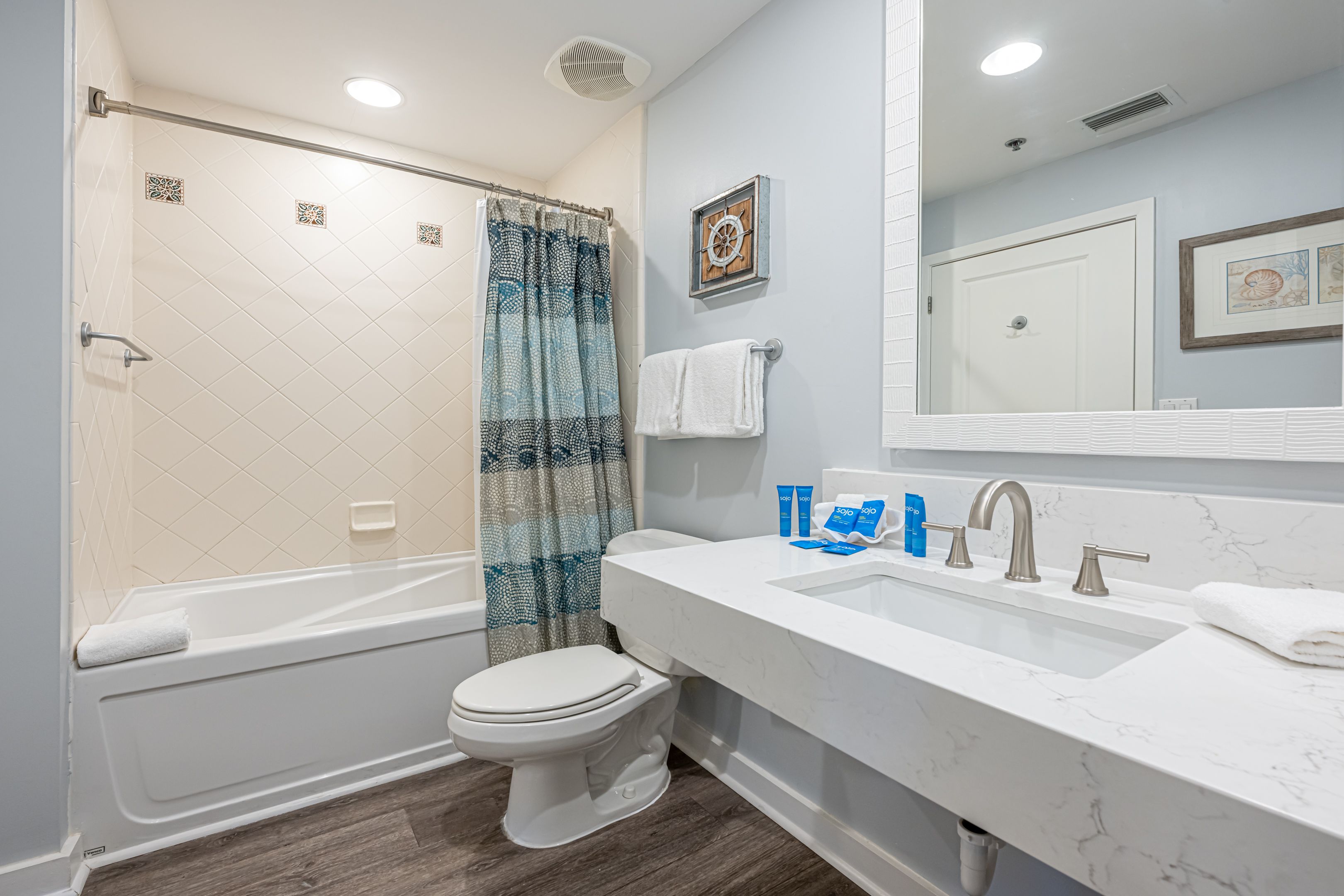 Just downstairs are the lush amenities of Luau II. A lagoon-style pool, sun deck with Gulf views and private access to the beach are waiting for your use. Steps from the elevator, it’s only minutes until your toes are covered in sugar-white sand and your mind is at ease! On the resort’s Beachside you can enjoy paths to a beachside restaurant, access to a putt-putt golf course and dedicated paths for jogging or walking. Bike to the Bayside of the resort using the tunnel and additional dedicated paths to explore the Choctawhatchee Bay and The Village of Baytowne Wharf. Start with a stop at The Baytowne Marina for lunch and a chance to watch the big boats come into the harbor. A lovely change of pace for your beach vacation!