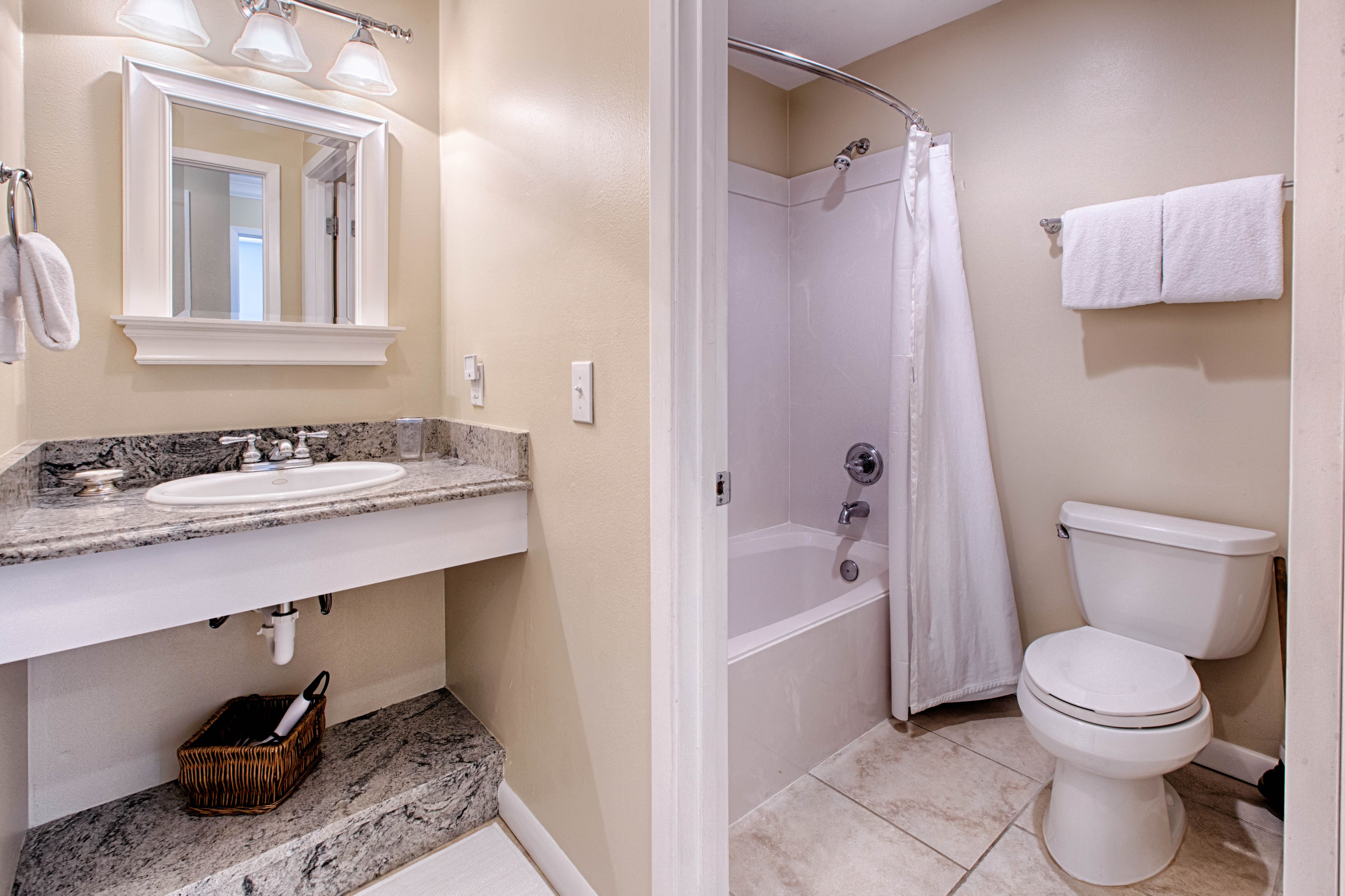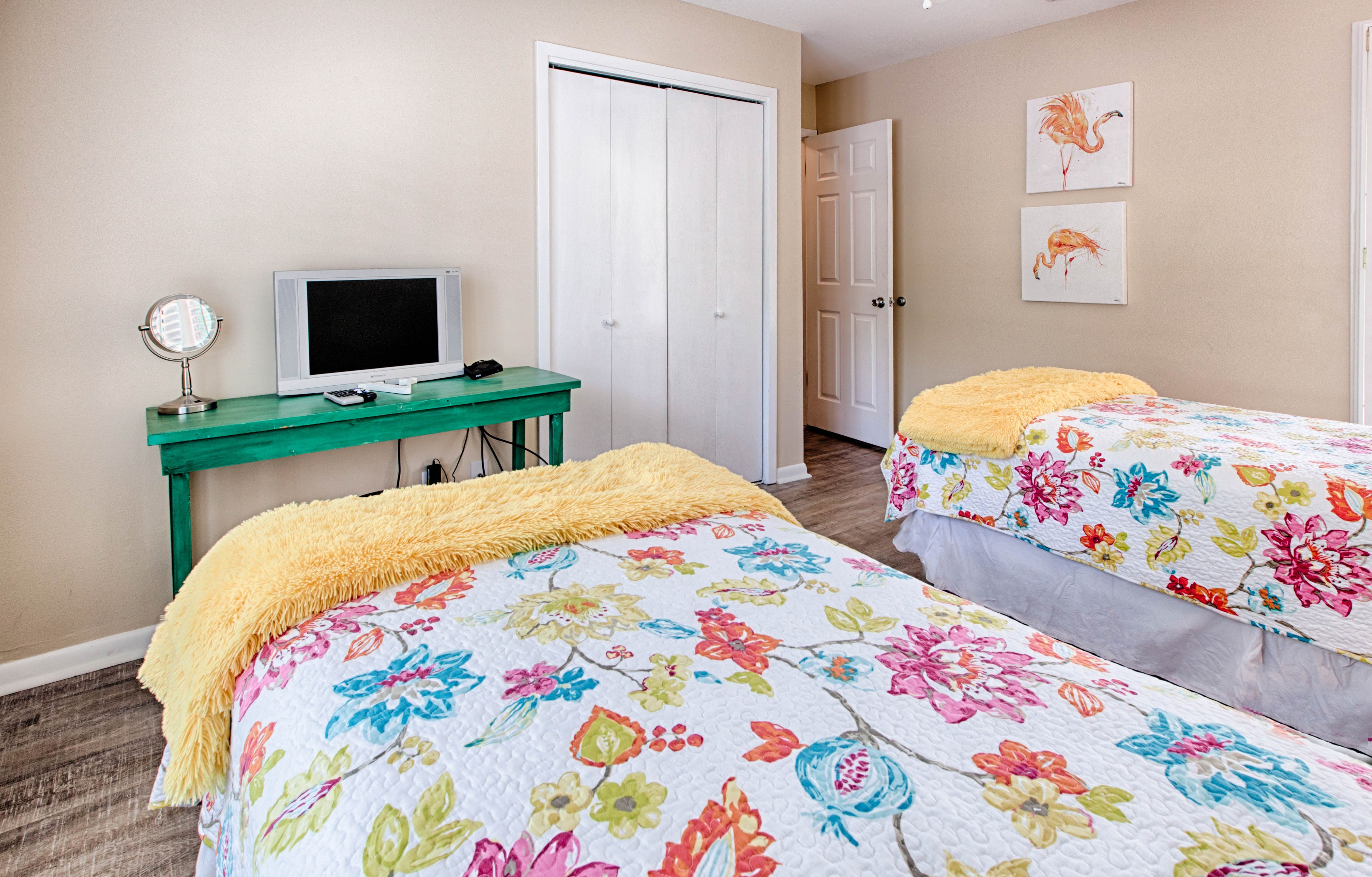 The lovely master bedroom offers a king bed, flat screen TV and plenty of closet space! The guest bedrooms are perfect for accommodating the rest of your friends and family with one having two twin beds and the other having a queen bed. Both of these guest rooms have a small desk/vanity area.