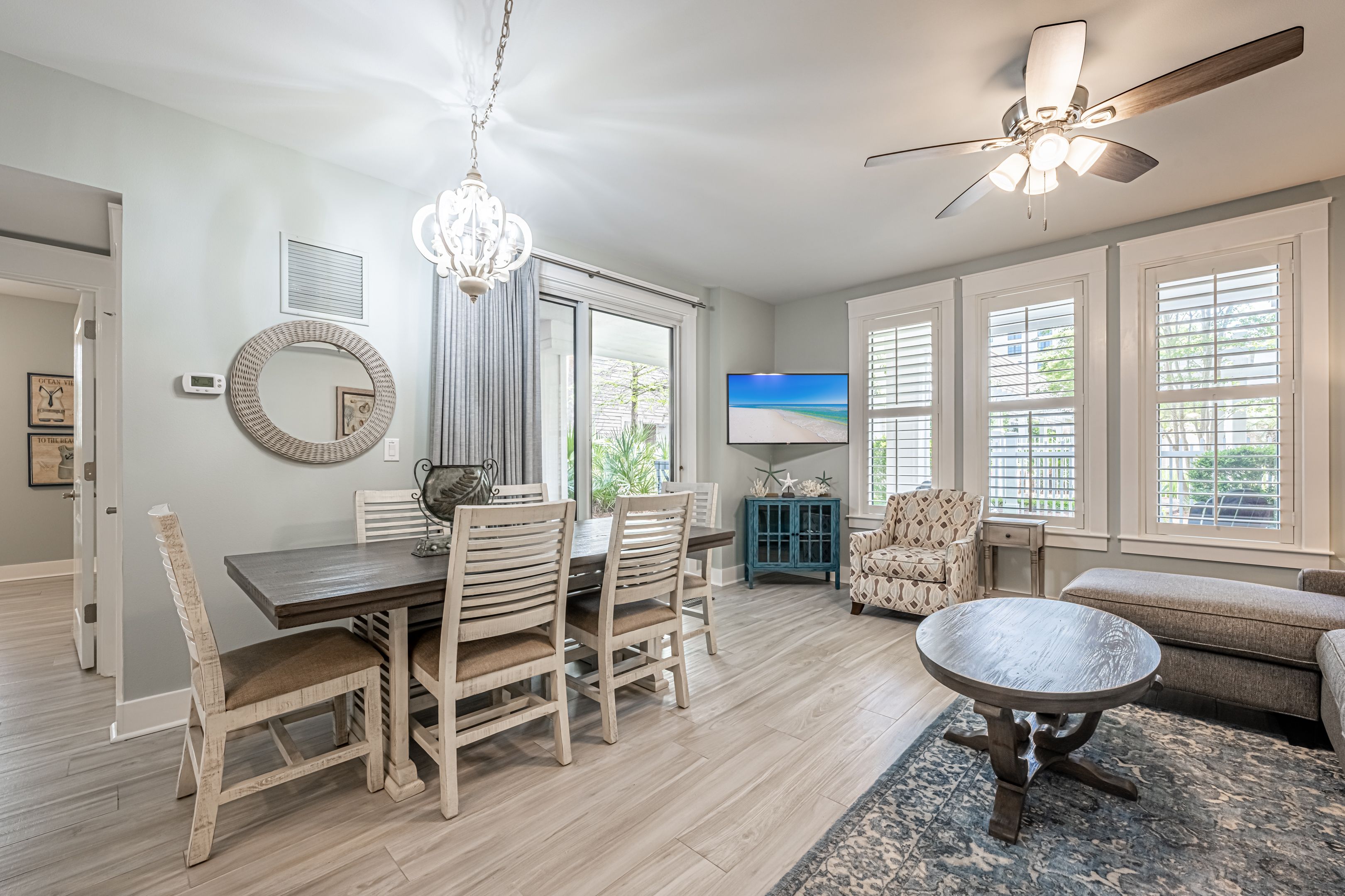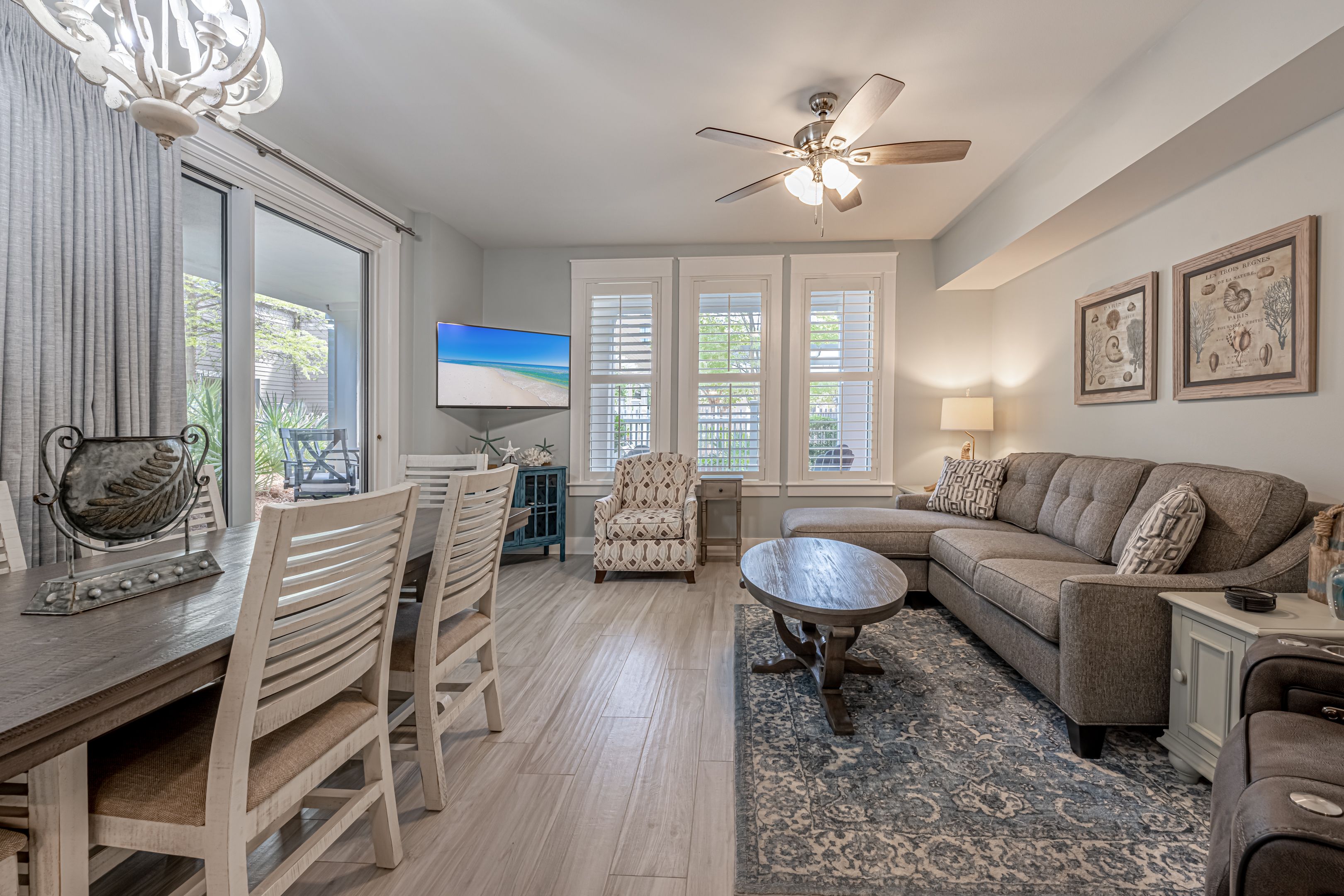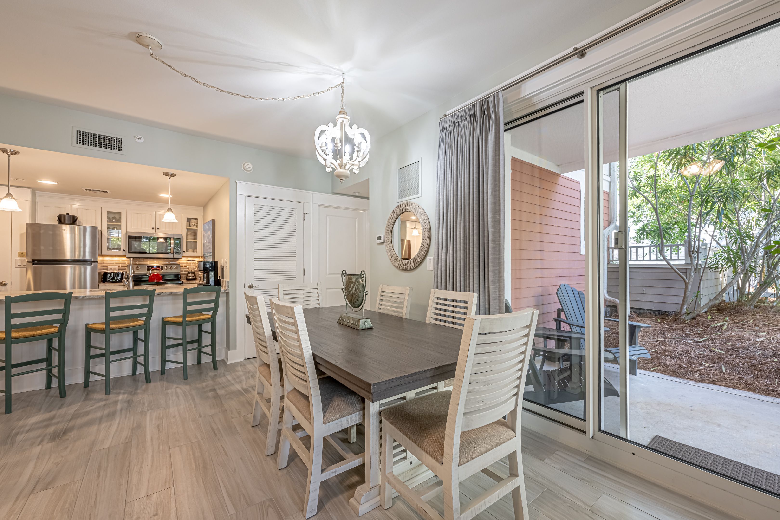 My wife and younger kids had a great time staying at this condo which was in a perfect central location for everything! The building is in the heart of Baytowne Wharf which has all kinds of restaurants, shops, and things to do with the kids, such as Baytowne Adventure Zone, which our kids LOVED! Golf, tennis, and pickleball are also right there. The unit is located on the main ground level with a beautiful wrap-around patio and courtyard area, which was very peaceful being an end unit with very little foot traffic. A great place for your morning coffee! Walk through the patio gate and you are a few steps away from the pool & hot tub area, a large common grill area with lots of tables to sit and eat (if you did not want to eat in the unit or patio area), and a gym. There is even a little kitchen area by the gym with a vending machine as well as an ice machine that you can use the fill your coolers up before you head to the beach! The interior of the unit was recently remodeled, beautiful, well-furnished, and comfortable. The kitchen had everything you may need to make a good home-cooked meal if you did not want to walk to any of the restaurants. Covered parking was also provided which was nice. The beach is just a few minutes' drive from the unit. Overall a great time and place to stay. We will definitely be seeking this place again on our next beach trip!!!