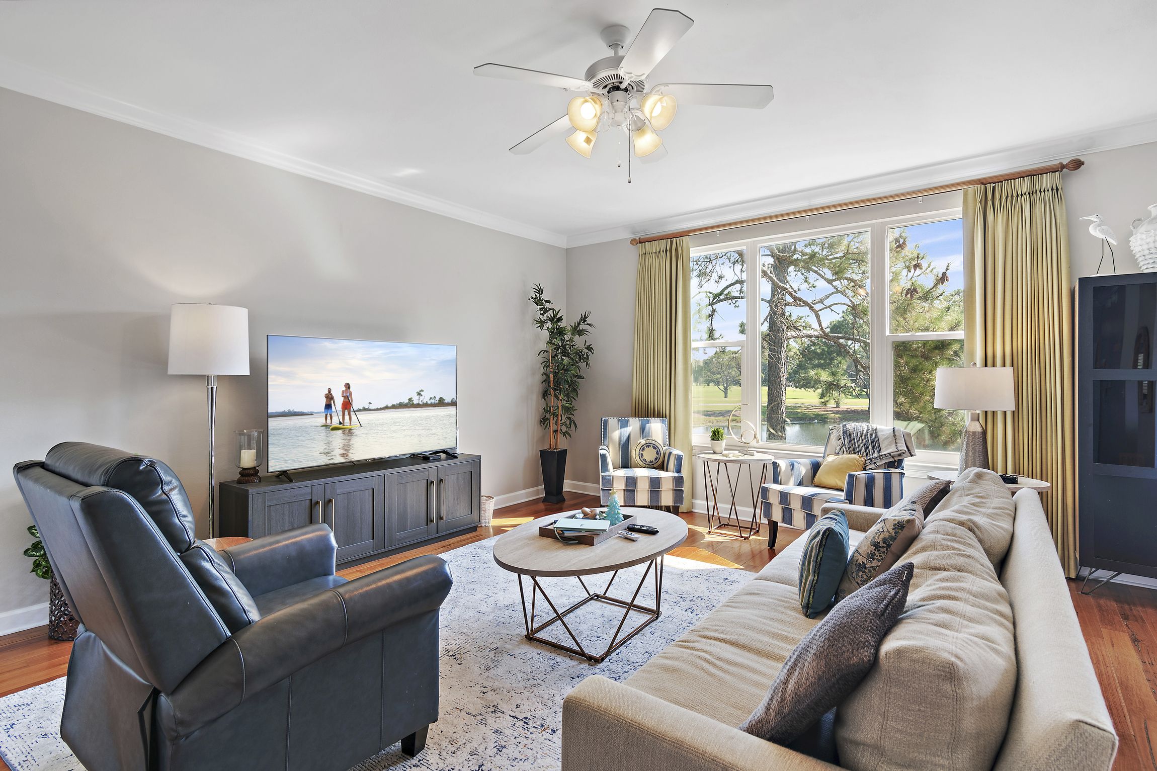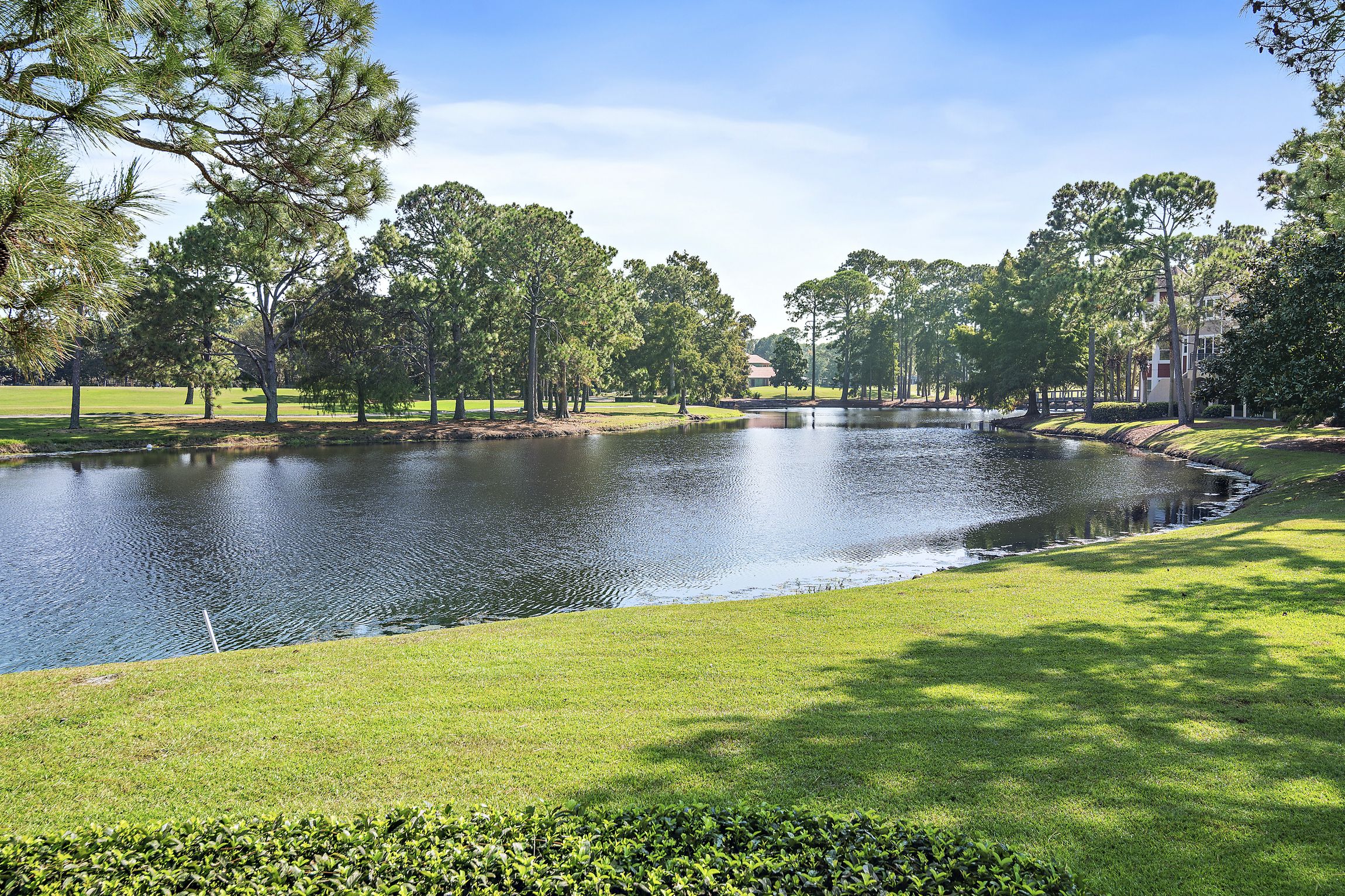 Newly updated, this 2-bedroom Turnberry condo comes with a 6 Seat Golf Cart! The entire unit has been freshly painted, the upstairs carpet was replaced with wood-look LVP flooring, and there is all new furniture throughout. Take in the serene views of the lake and the 1st hole of Baytowne Golf Course from one of the many windows within the condo or from the spacious, open balcony. The first floor encompasses a fully equipped kitchen, including a pantry, large living and dining area, and a powder room.