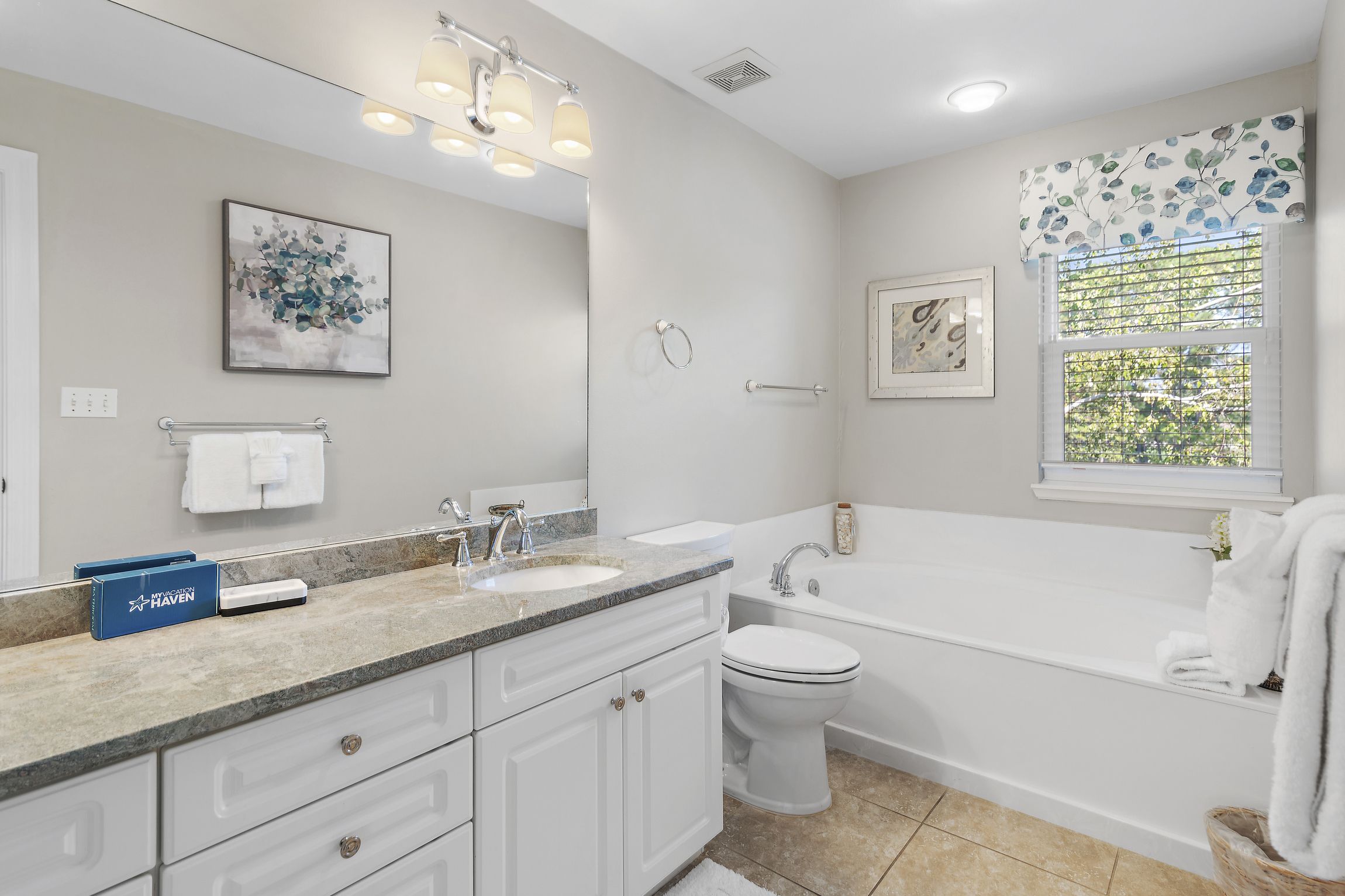 At the top of the stairs is a loft space with a new full size sleeper sofa, providing extra sleeping accommodations and a laundry closet with the washer and dryer. Both bedrooms are located on the second floor. The Master suite features several windows providing for ample natural light, a walk-in closet, and ensuite bathroom with a double vanity, large garden tub, and walk-in shower. The guest bedroom features two twin beds and an ensuite bathroom as well.