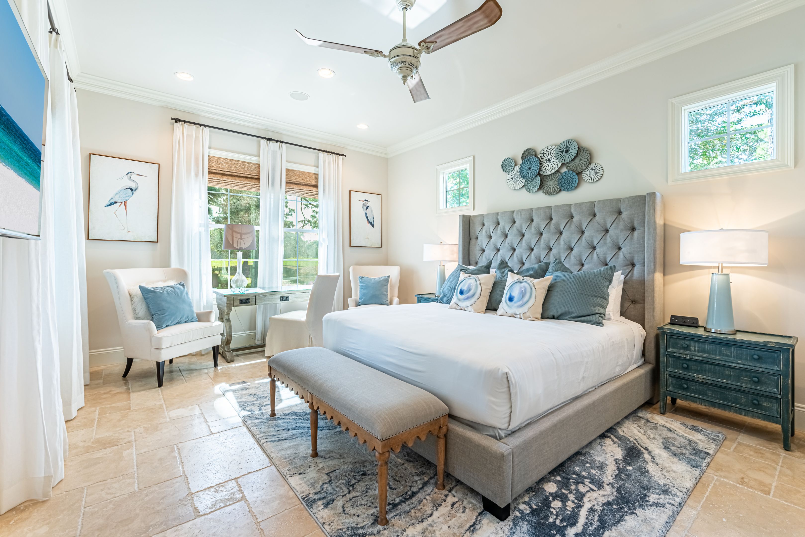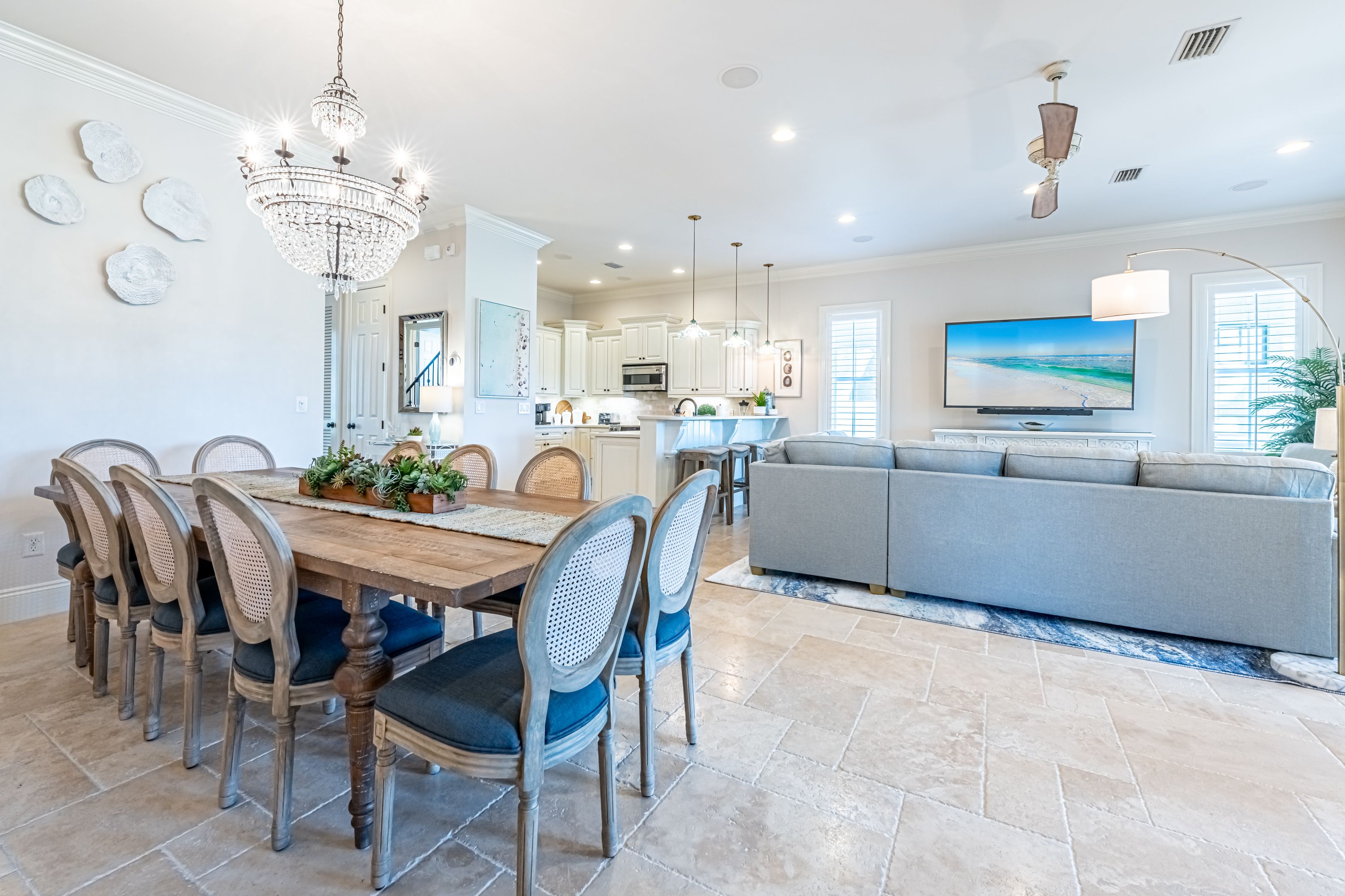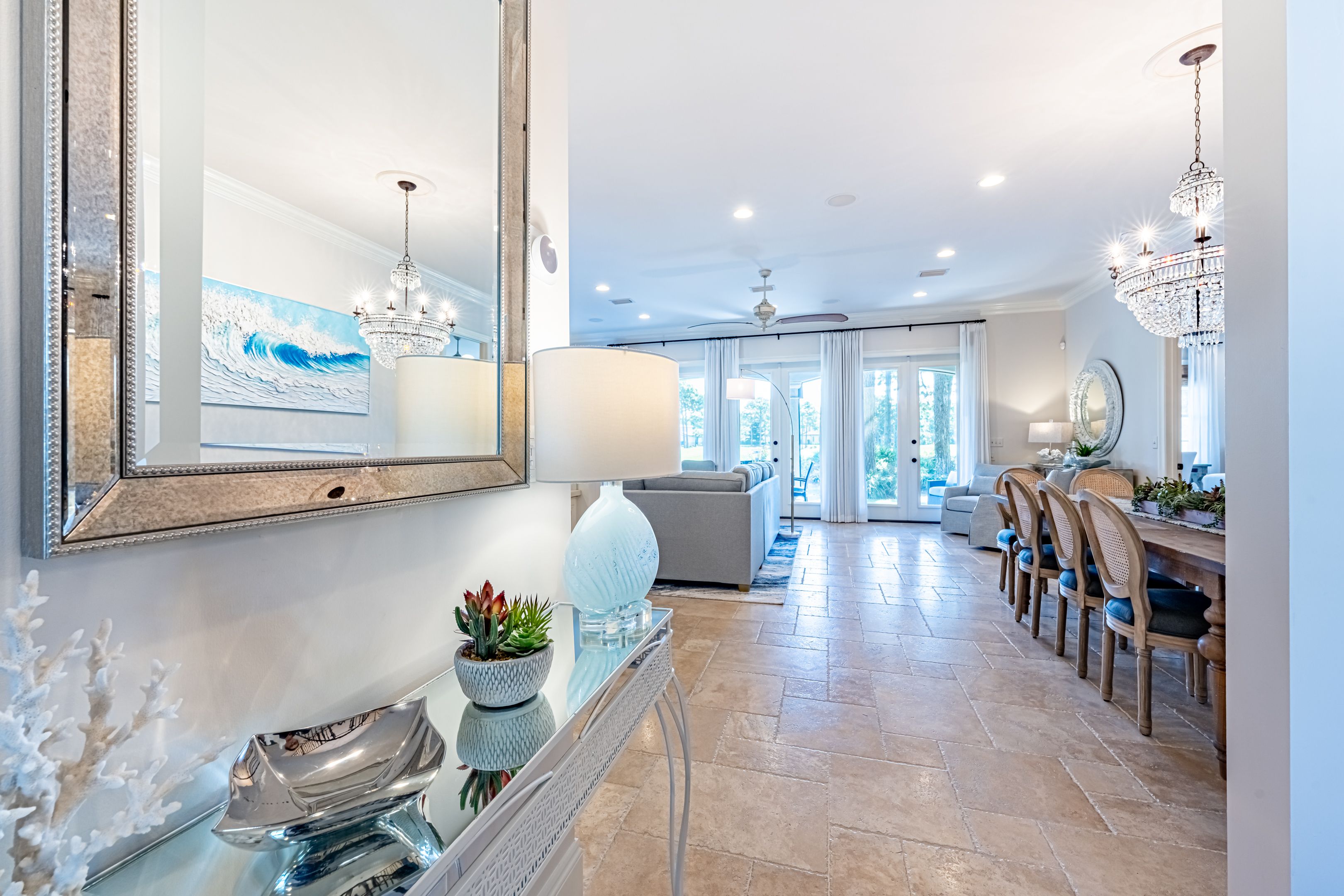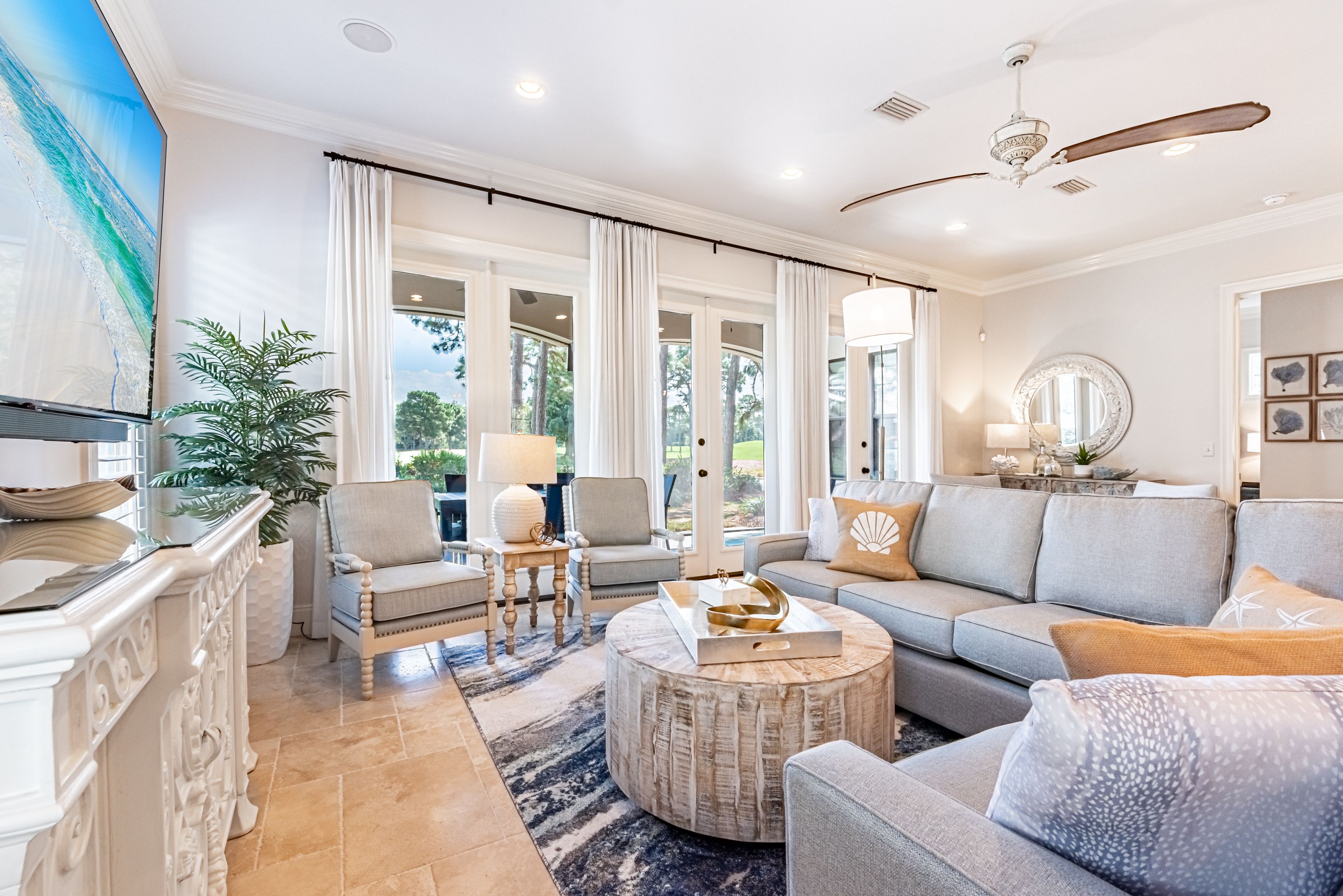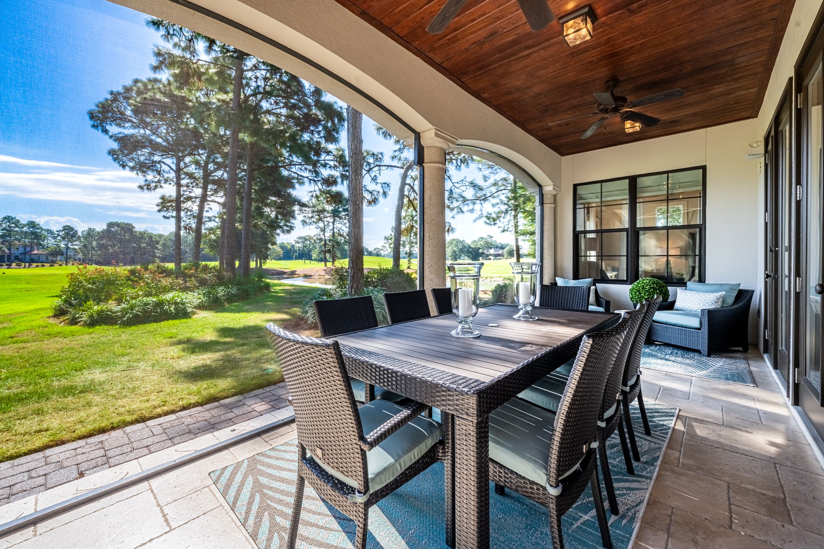 We thoroughly enjoyed our stay in this gorgeous home! From the beautiful furnishings and accessories to the well stocked kitchen and large screened porch overlooking the golf course, everything was perfect. We enjoyed fabulous dining and shopping at Grand Blvd and all the activities, shops and restaurants of Baytown Warf, easily accessible by the two six seater golf carts provided with this home. Although this home is not on the beach, you can load up the golf cart, take a fun ride and be there in no time! Mermaid Manor is a beautiful, comfortable, place to return to after a fun day in Miramar Beach.��️