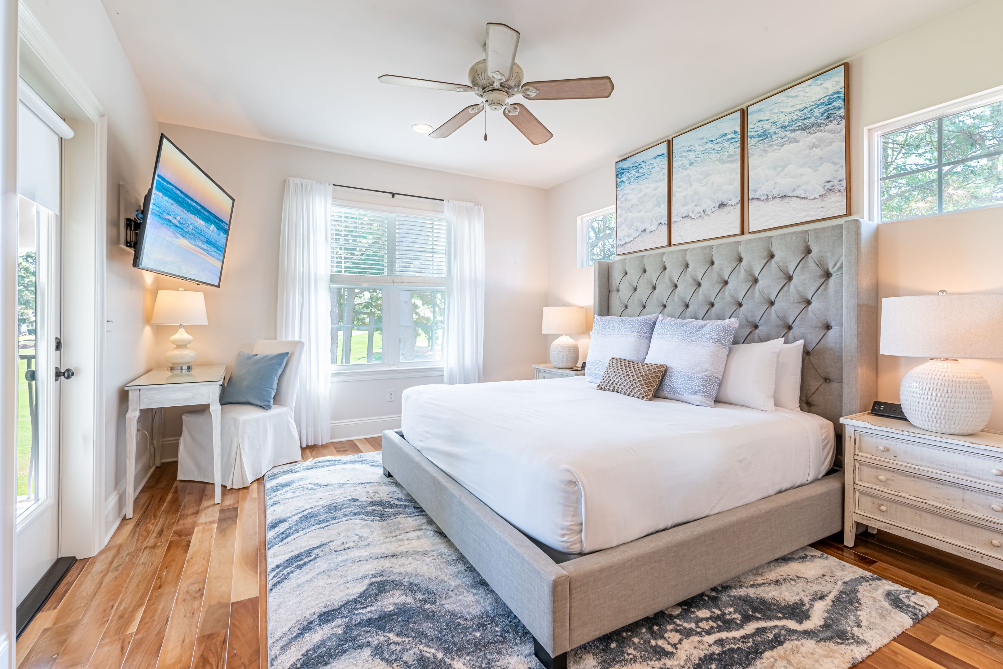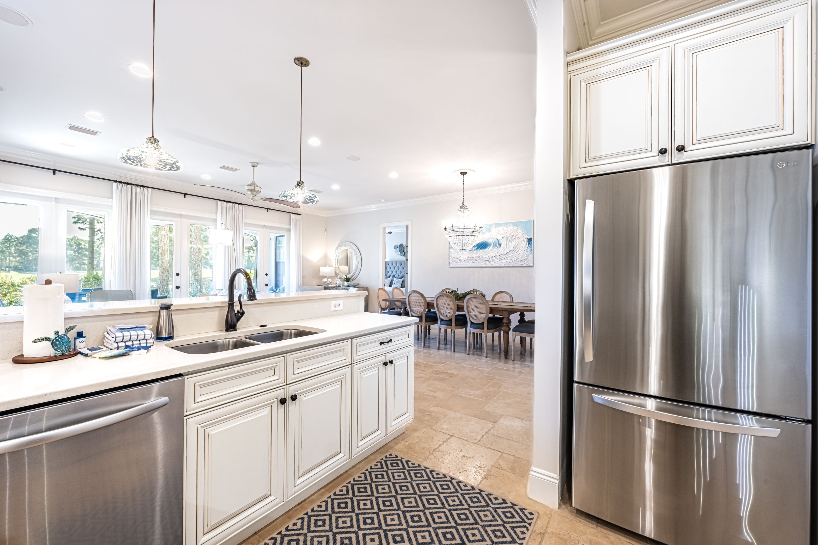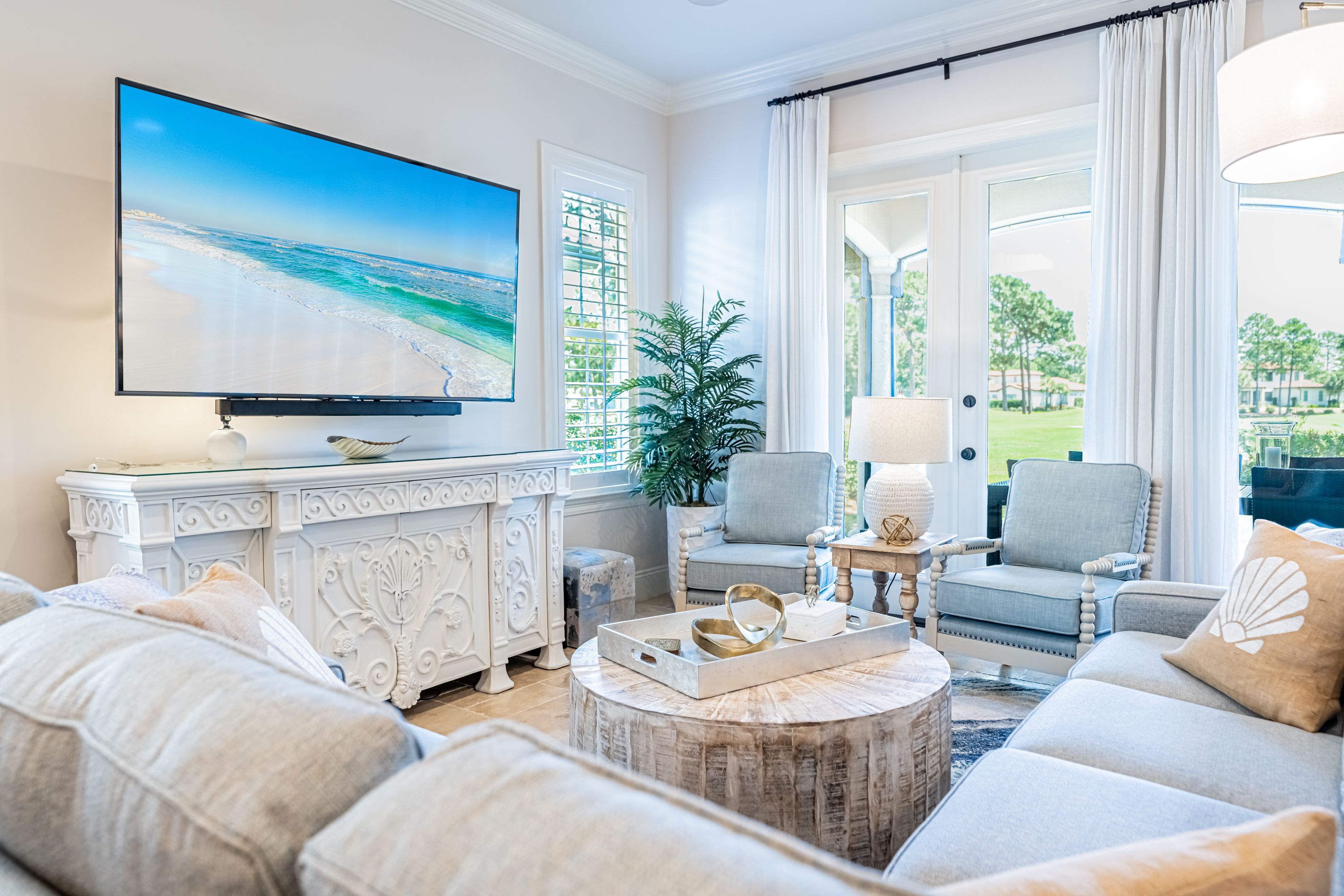 Equipped with five new Smart TVs, brand-new furniture, plush king-size mattresses, and a sleeper sofa in the living area, this home caters to every modern need. The garage is stocked with full beach gear, and with two golf carts at your disposal, exploring the charming resort surroundings has never been easier.