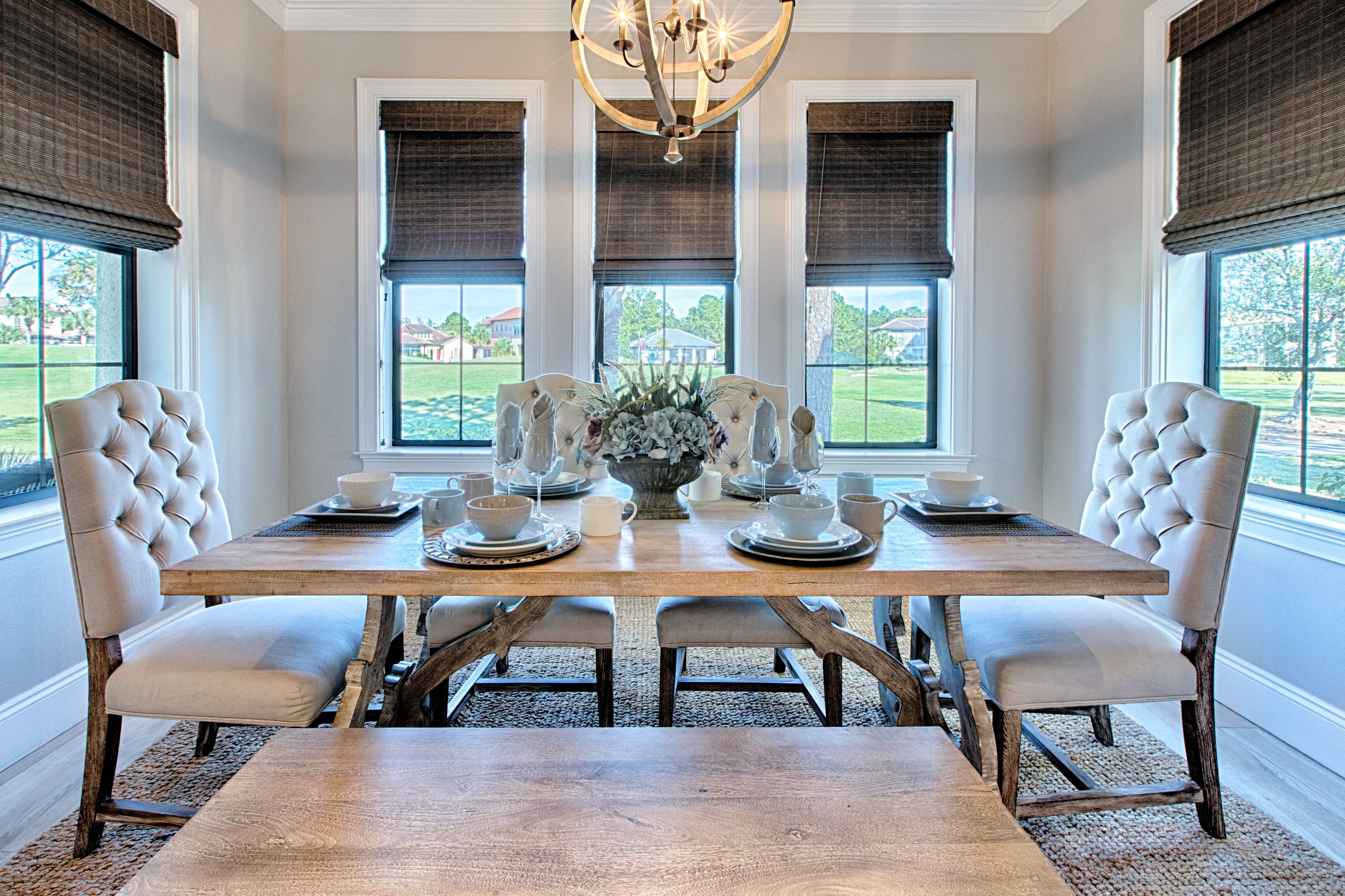 Our family (2 adults + 3 kids) spent a week here for Spring Break 2019. The home could not have been more gorgeous...and CLEAN! My family laughed at me because I just kept commenting on "how cute" it was. The location is fantastic (and Sandestin never disappoints!), and we utilized the pool right across the street, went to dinner/ice cream at the Wharf just down the road, short drive to the beach, we jogged the trails, played basketball, hit up juice place in the shops at the front, and we also just enjoyed sitting on the balcony/patio with a glass of wine watching the golfers go by. Grocery store is just down the road (technically outside the gates of the resort, but you don't even have to get on the highway). Small snafu with the golf carts meant we were without both for about half the week, but the mgmt. co was responsive and helpful (as was Sandestin security and Ft Walton Fire Dept!). Each child had their own room/bathroom, and we had ample space. If you consider staying at this property (AND YOU SHOULD!), make sure you bring your own beach towels as well as items for the kitchen. We left the corkscrew that we bought, and were missing basic items such as oven mitts (something you take for granted until you're ready to pull something hot out of the oven!). Panama City Beach is about 30-45 mins away, and charming Seaside was even closer (if the traffic there not been so INSANE, we would have spent more time).