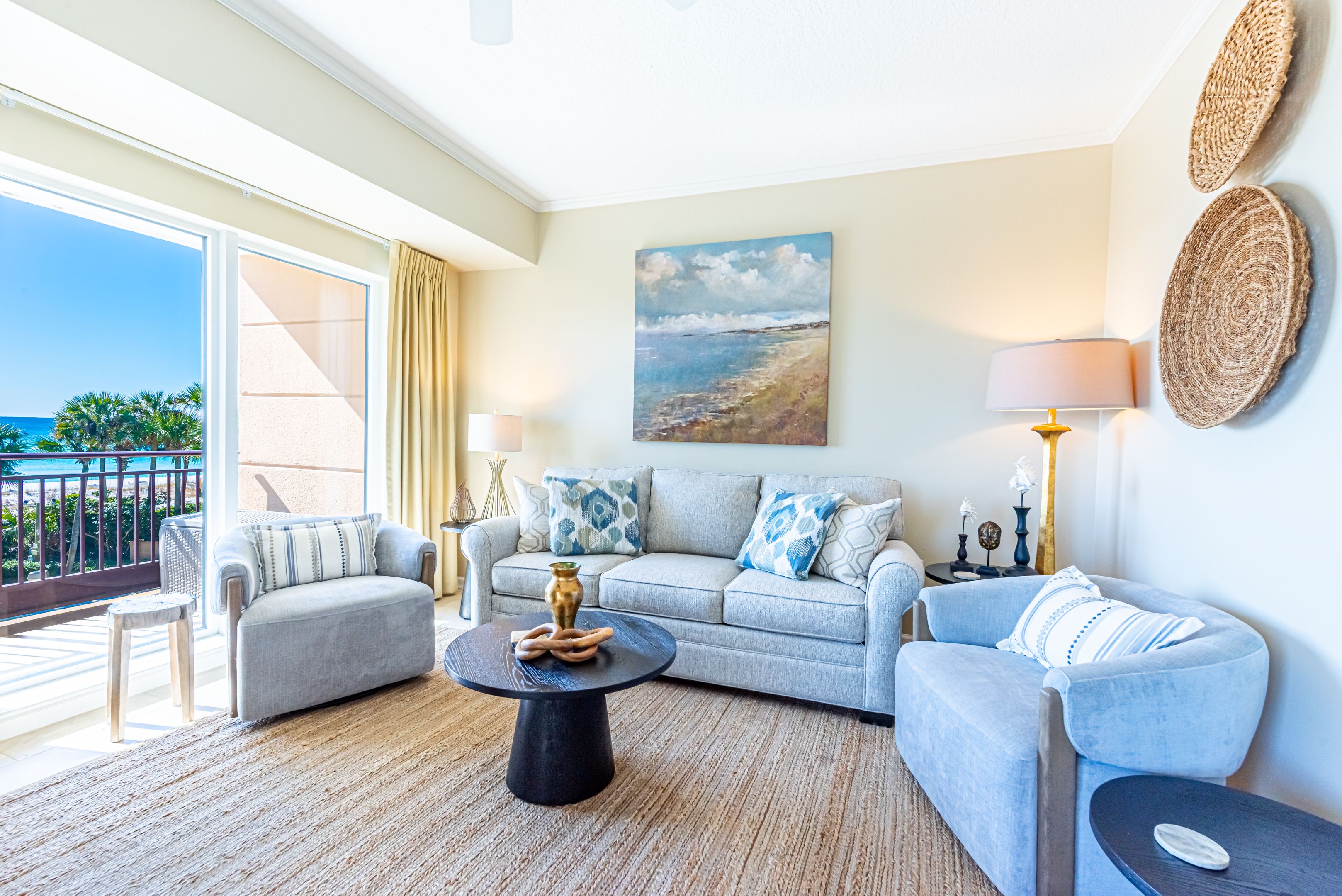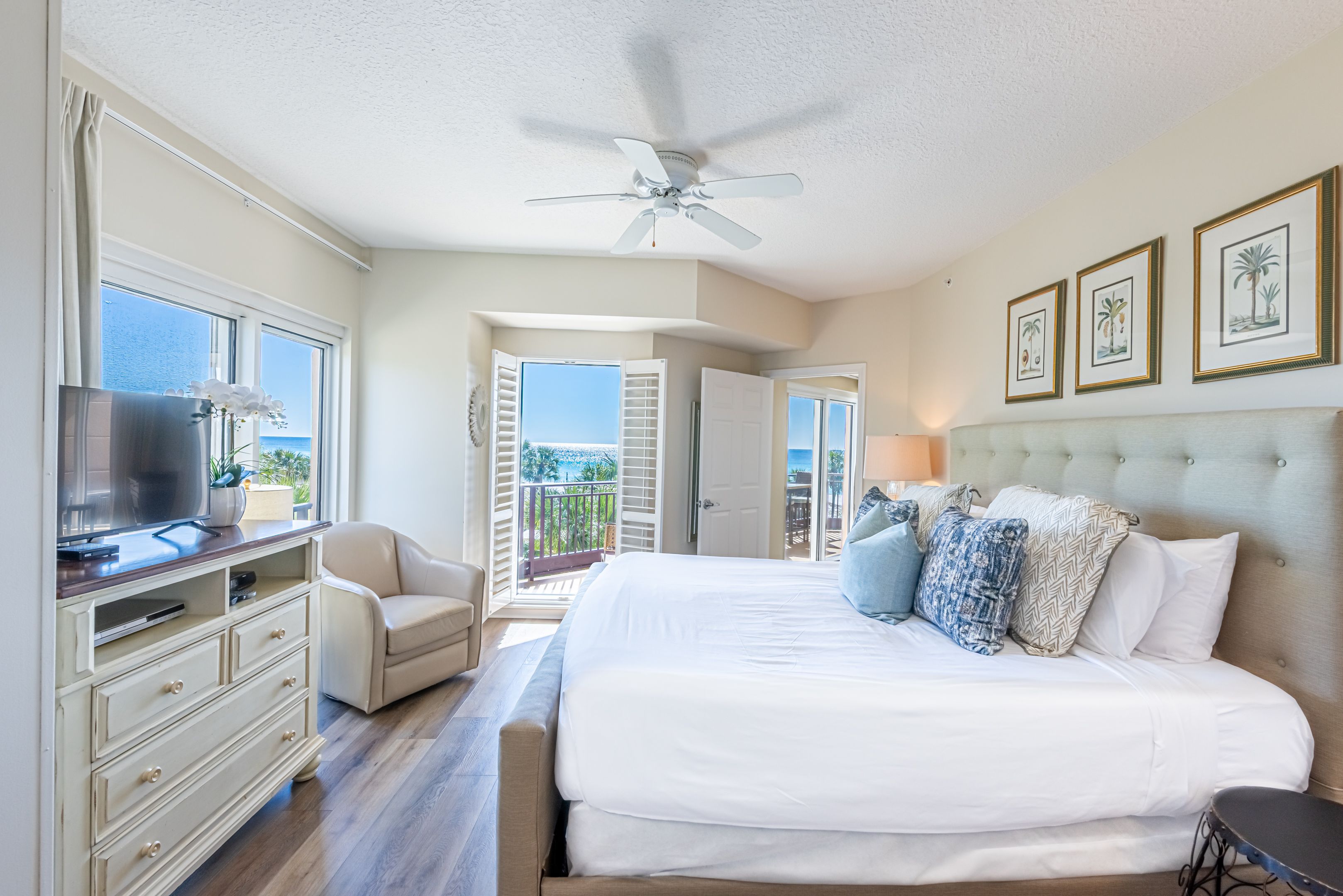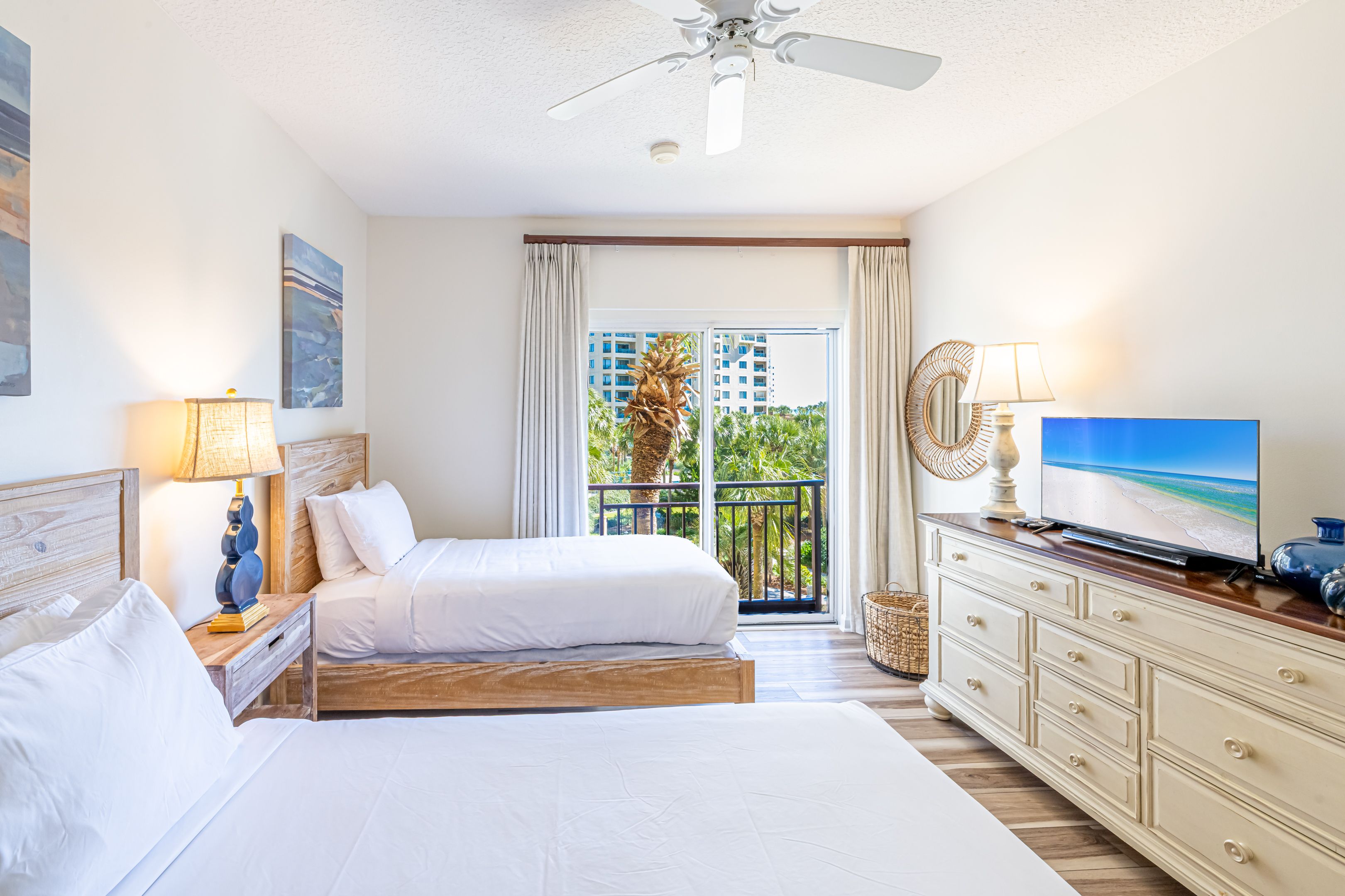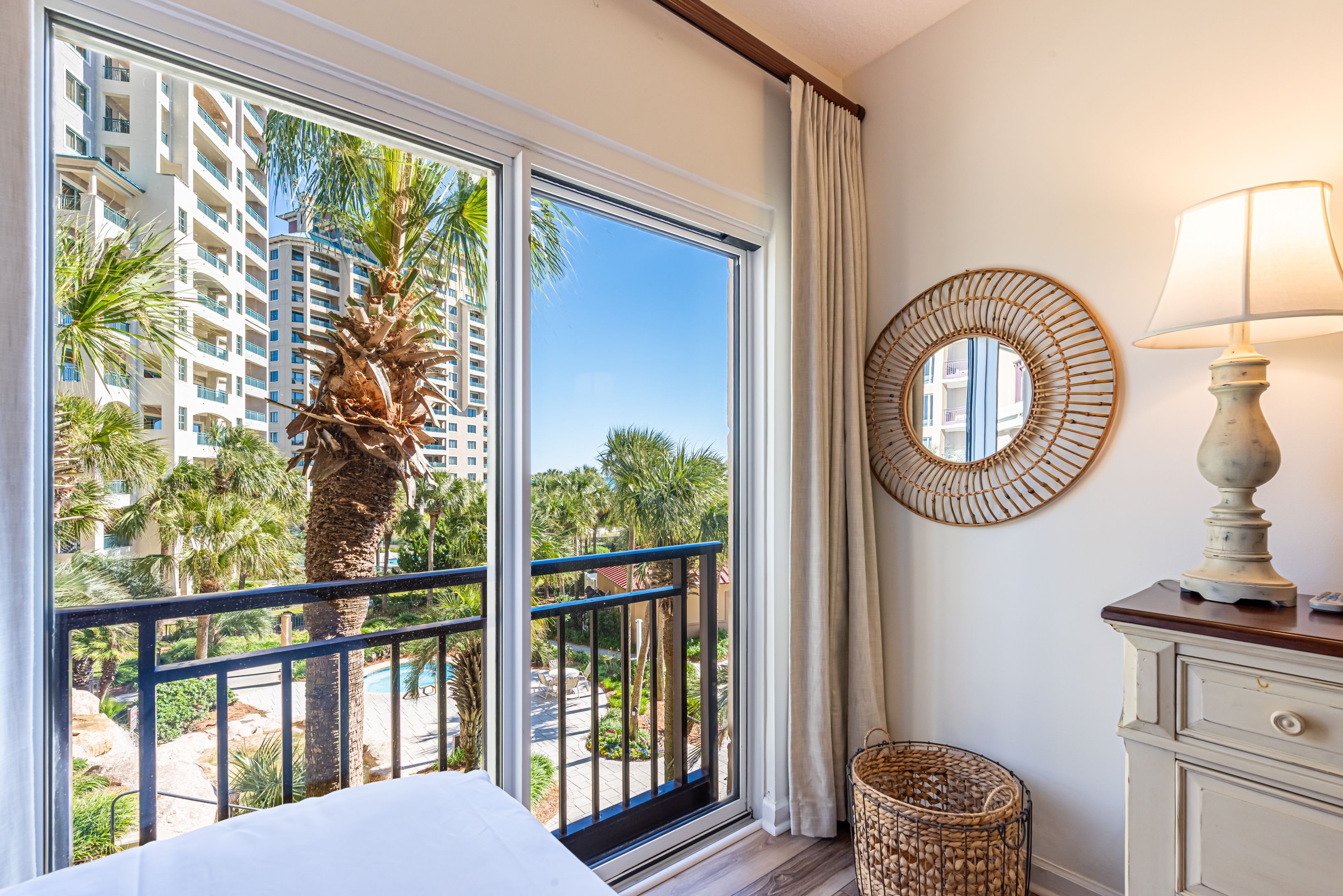 Great layout and views! Highly recommend for that alone. The beds were not only aesthetically pleasing but comfortable too.The supplies available came in handy. Especially beach chairs! It was easy to get to the pool,the beach and shopping.