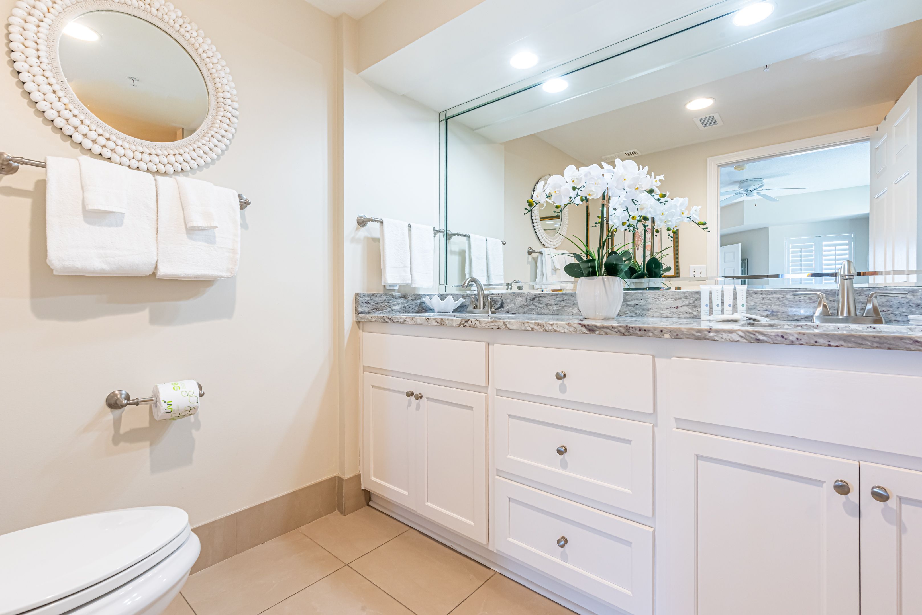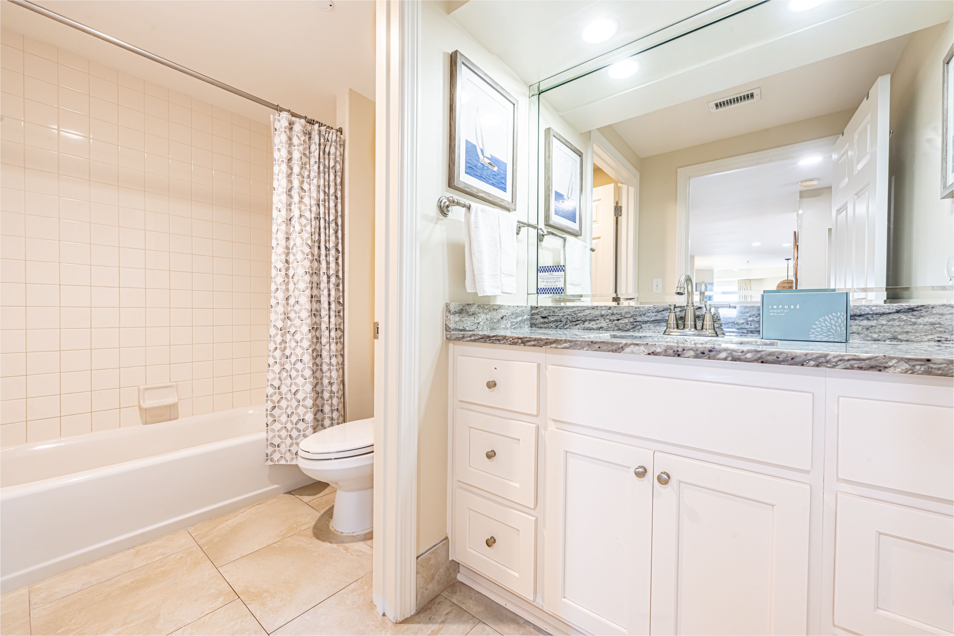 We rented a 2 bed 2 bath , master bath was lovely But the guest bath tile was not clean :( and I was glad I didn’t have to use it as it had mildew on the grout :(.