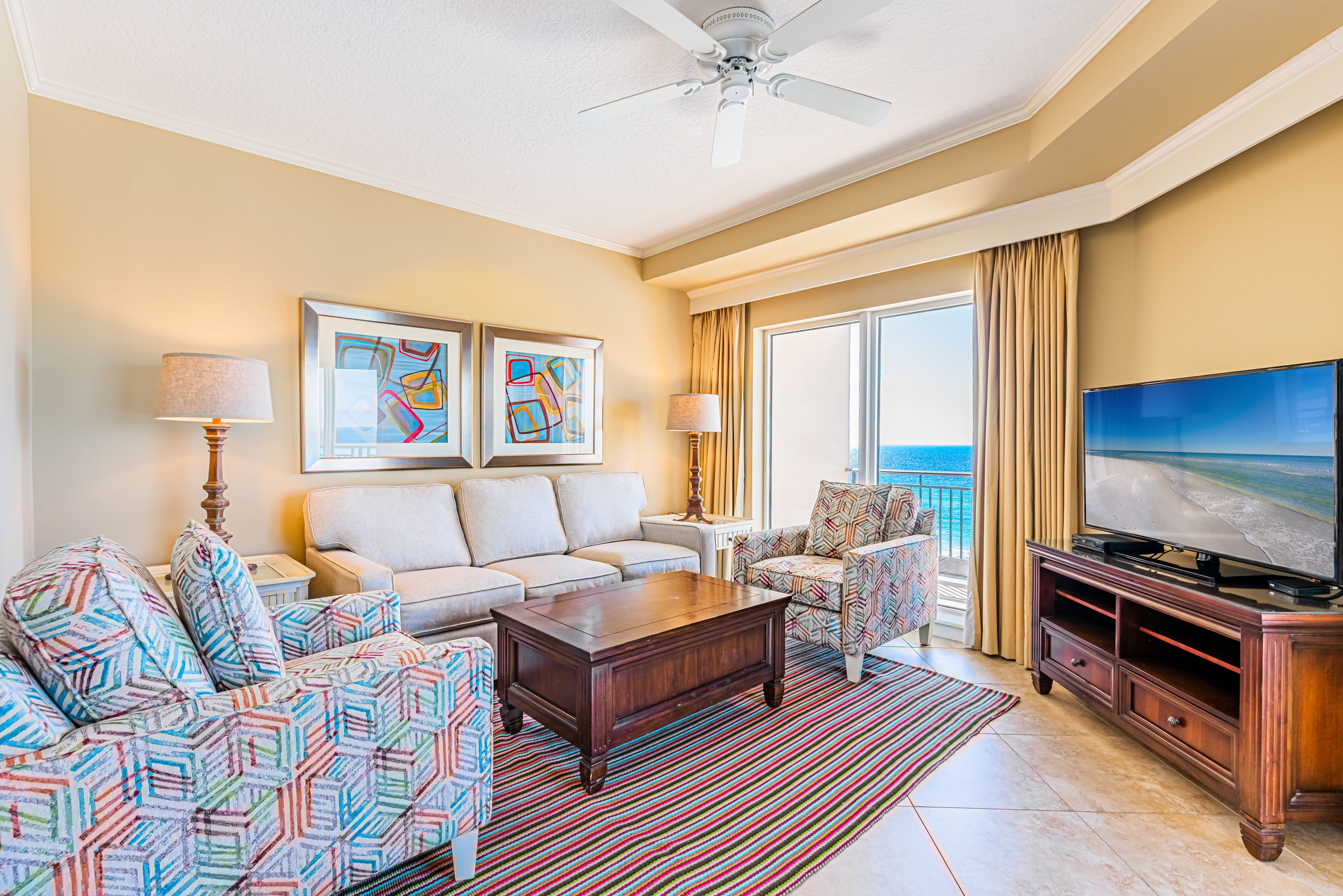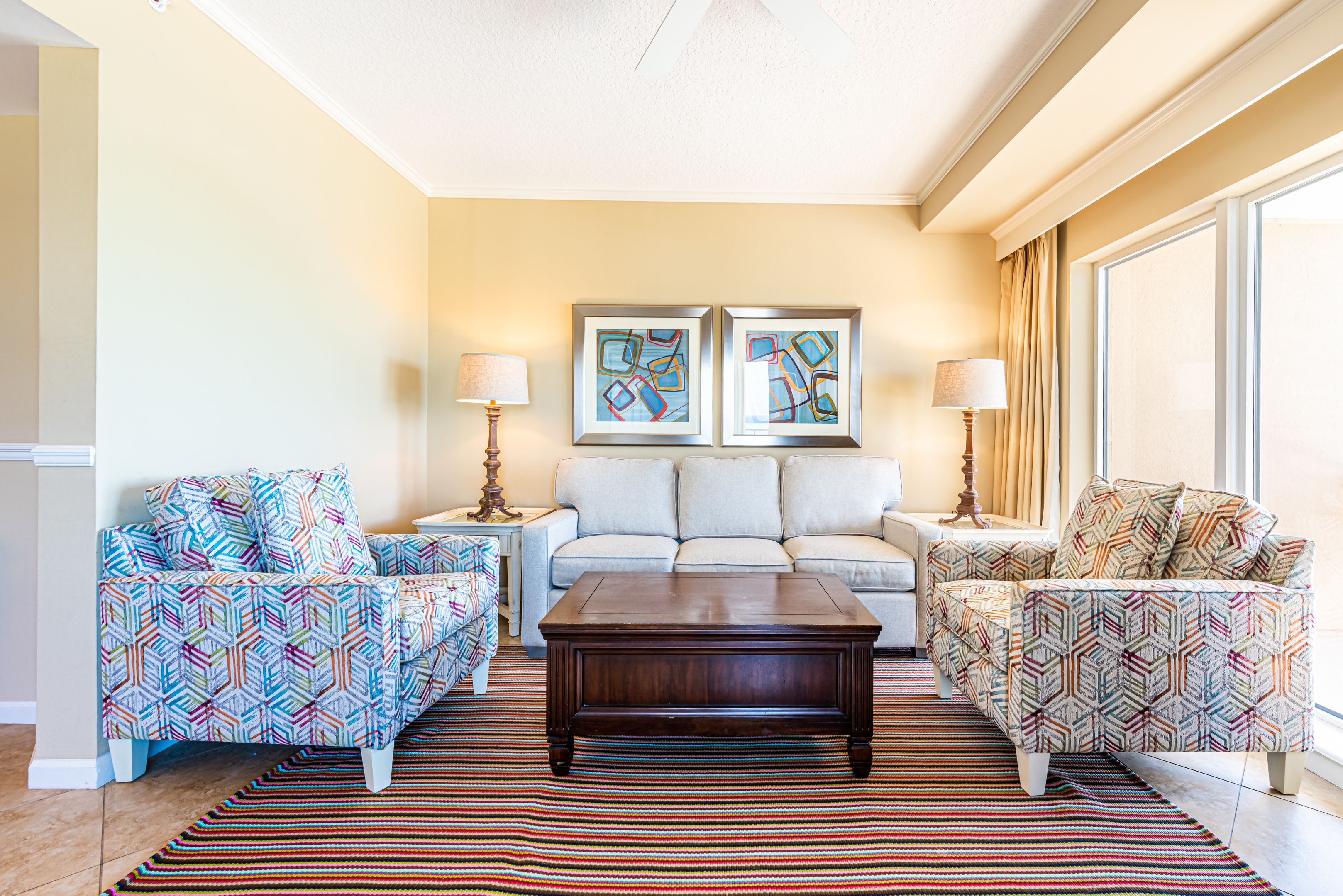 After a day sunning by the pool or lounging on the sugar white sand beaches, continue your relaxing afternoon when you make your way to the unit and its cottage-styled décor. New living room furniture and window treatments will welcome your group to sit and enjoy.