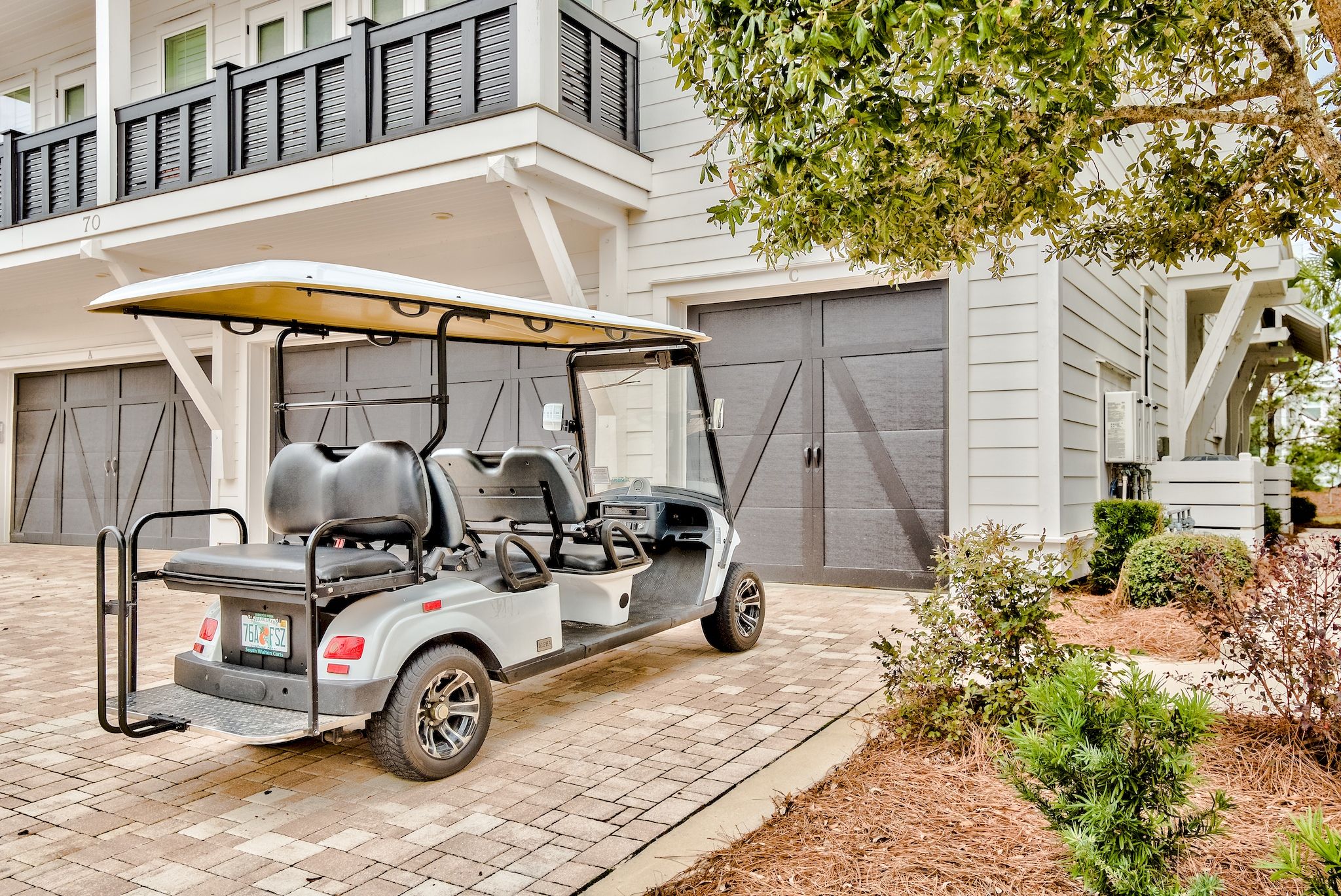 Beautiful property right across the street from the Hub on 30A. Close beach access and short drive downtown Seaside or Rosemary Beach. Golf cart was amazing and my family loved our 4th of July trip!